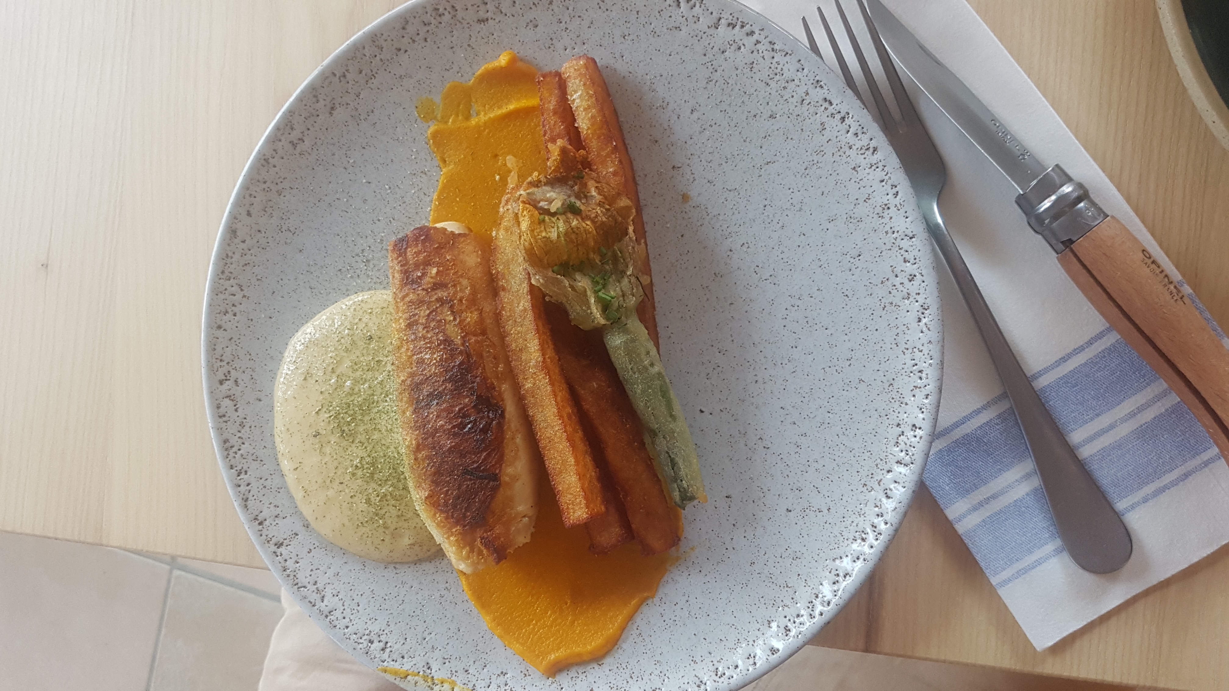 Tout était parfait! Un merci spécial à notre petite serveuse tellement sympa! La courgette jaune n’était que pour moi :)