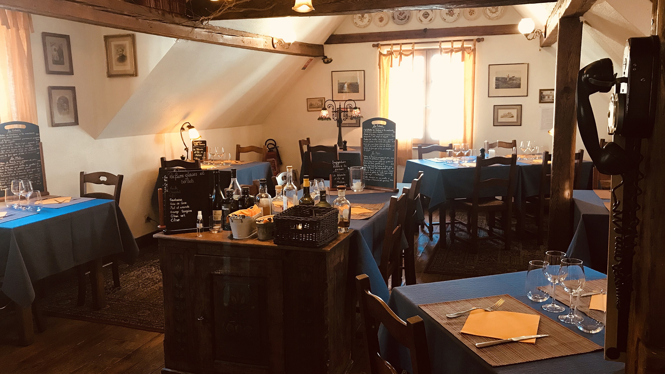 Posté le 14/10/2020 à 17:38"Accueil chaleureux, belle salle à l'étage (poutres apparentes, plancher bois, décor authentique ). Menu original, belles propositions de vins. On s'est régalé pour un prix raisonnable.. A recommander."