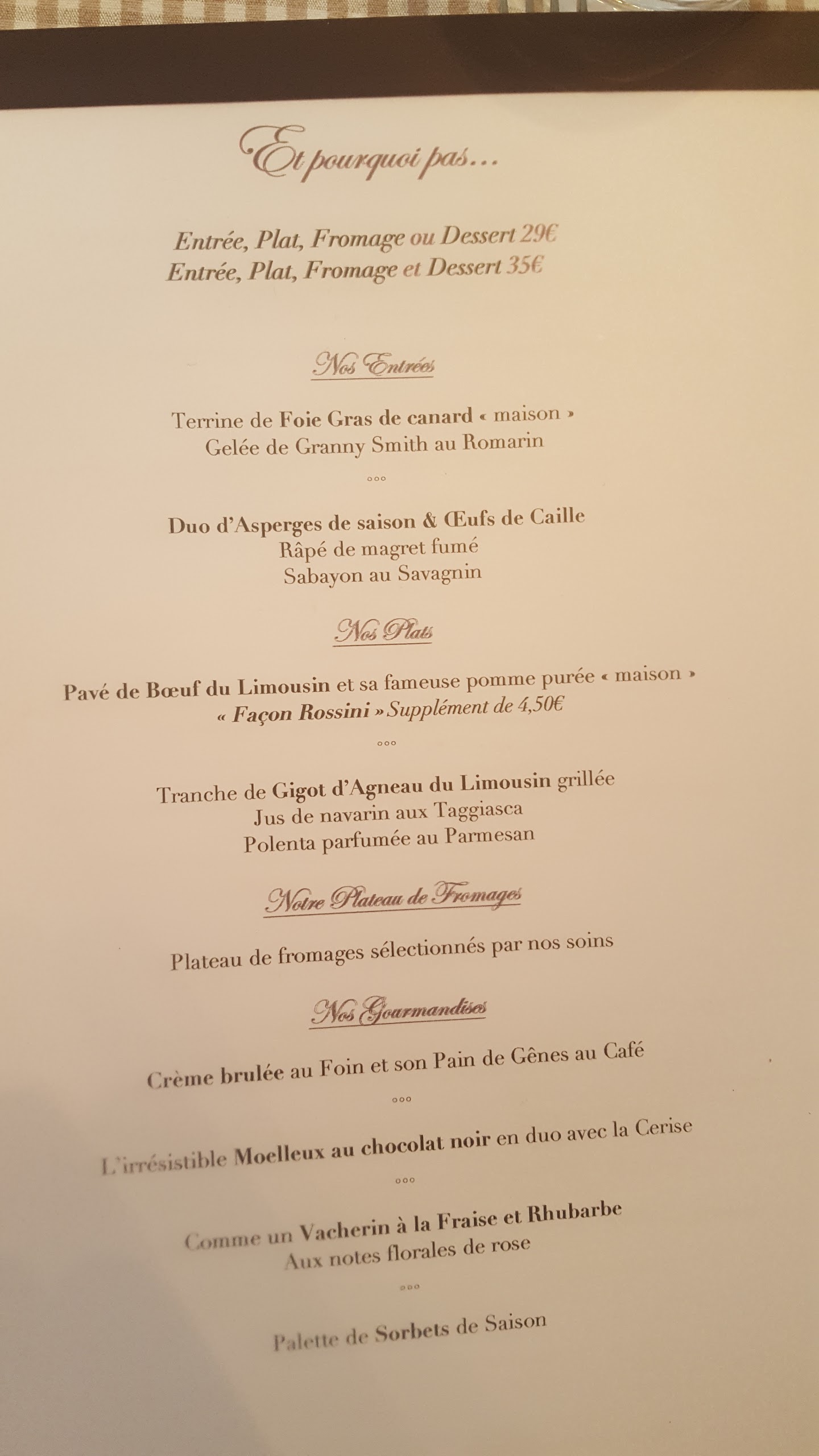 Posté le 26/07/2017 à 07:52"Très bon restaurant avec une carte restreinte, pas donnée (29€) mais d'excellente qualité"