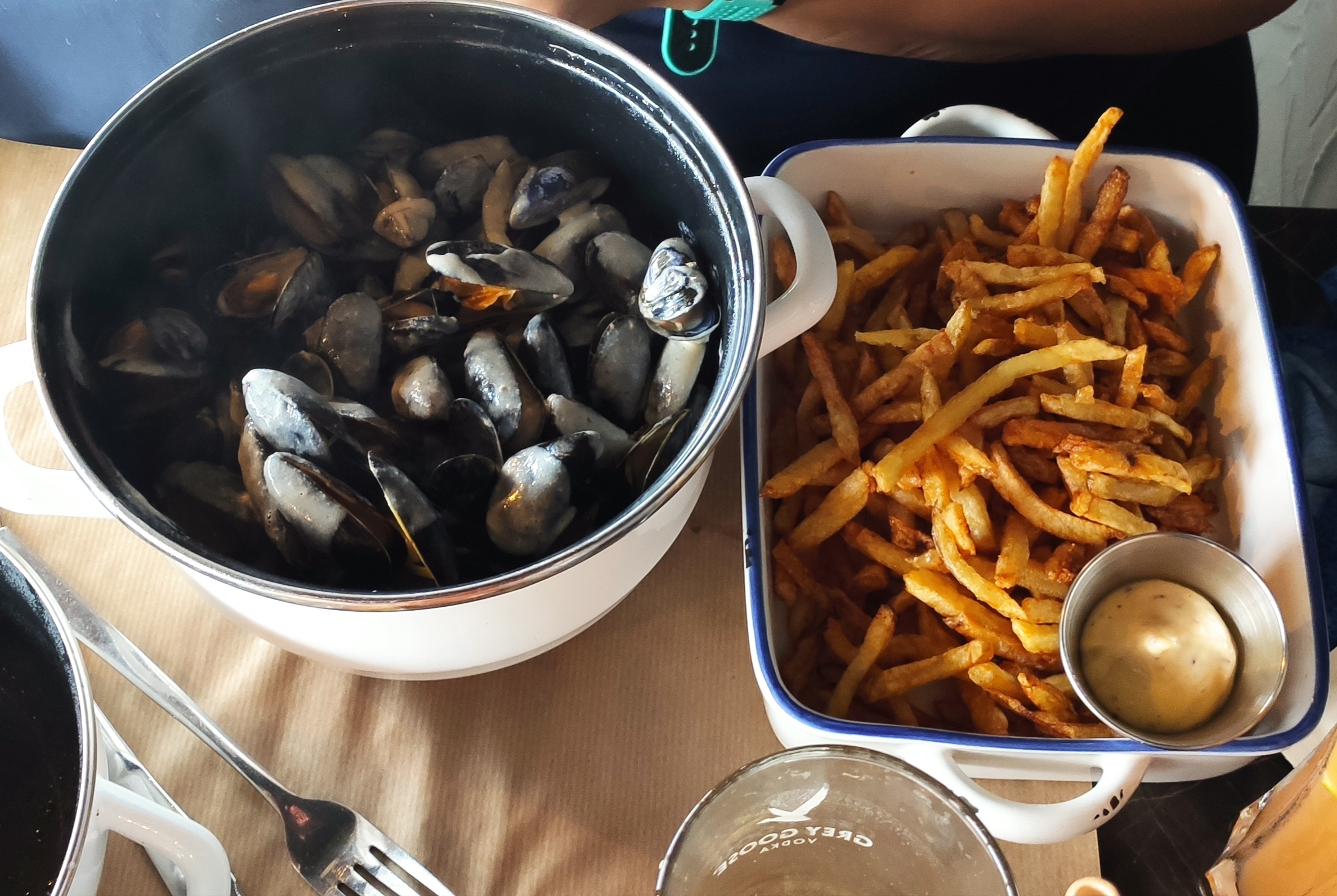 Ambiance et service super sympa, en terrasse. Frites et mayo très bonnes, les moules étaient un peu trop cuites à notre goût mais experience générale très bonne.