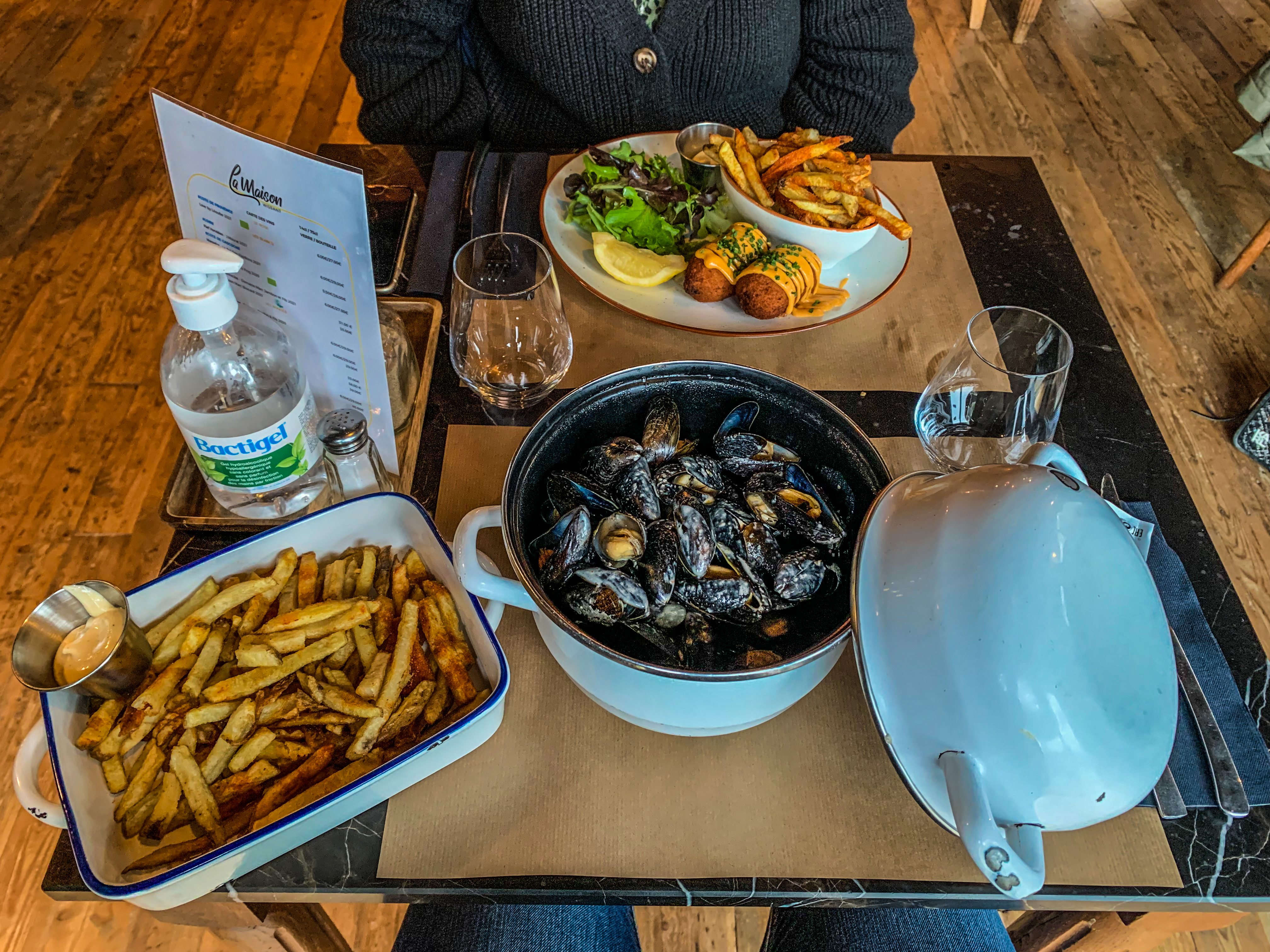 Petite carte avec une seule sorte de moules : au curry. Excellentes ! Ça change des marinière basiques mais reste tout de même dans l'esprit moules frites. Frites faites maison. Bonne citronnade maison, jolie sélection de bières locales. La mousse au chocolat en dessert était très bonne et pas écoeurante. Nous recommandons sans hésiter