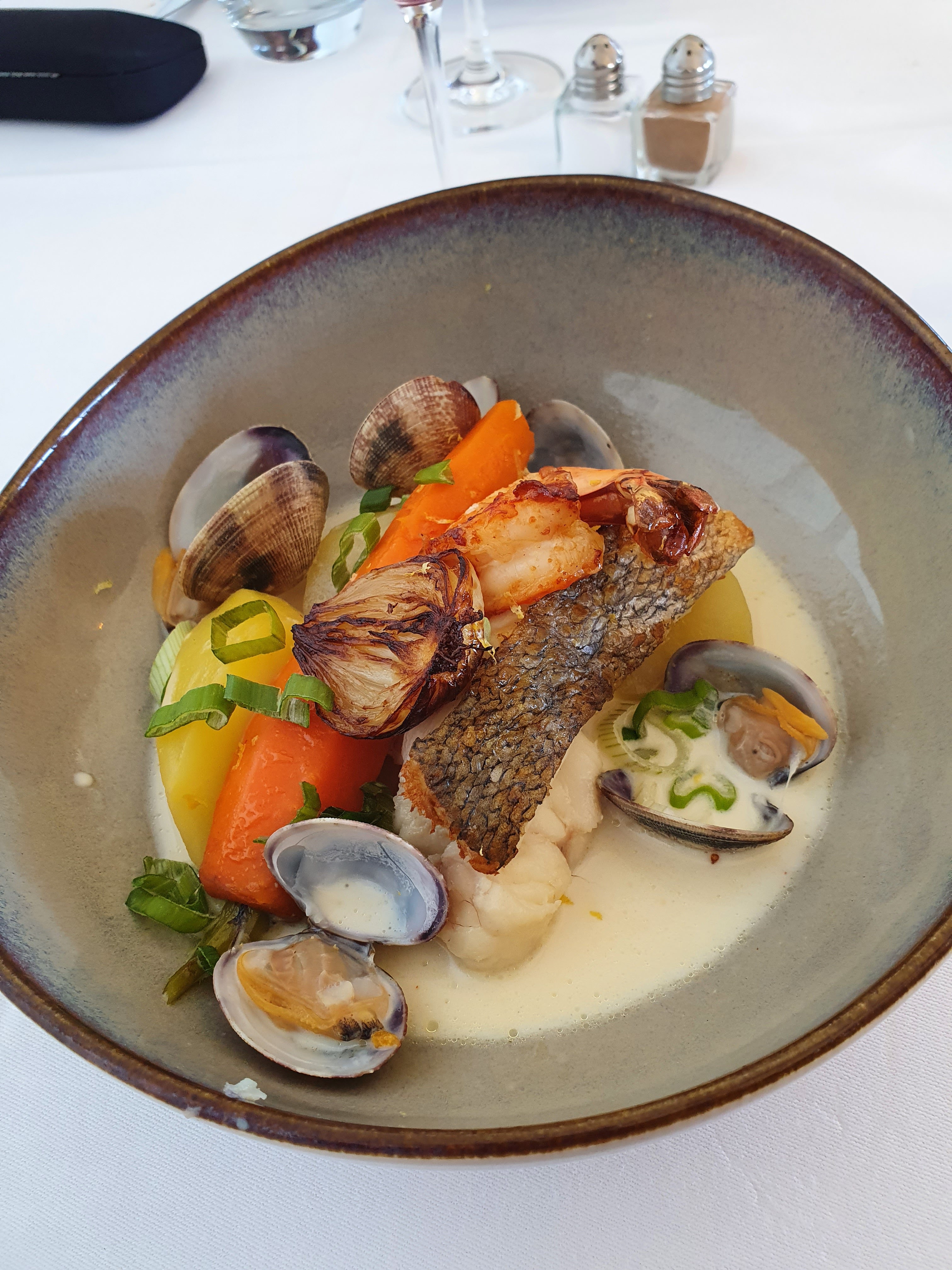 Au top ! Dans un cadre très jolie, admirez la vue, on y est très bien accueillis. La carte, pas forcément immense mais largement suffisante pour tous les goûts, promet du coup des produits frais et entièrement faits maison, ça se sent et c'est excellent. Ici le merlu pour 2 et un café gourmand, c'est généreux. Ce n'est pas donné mais ça vaut le coup :)