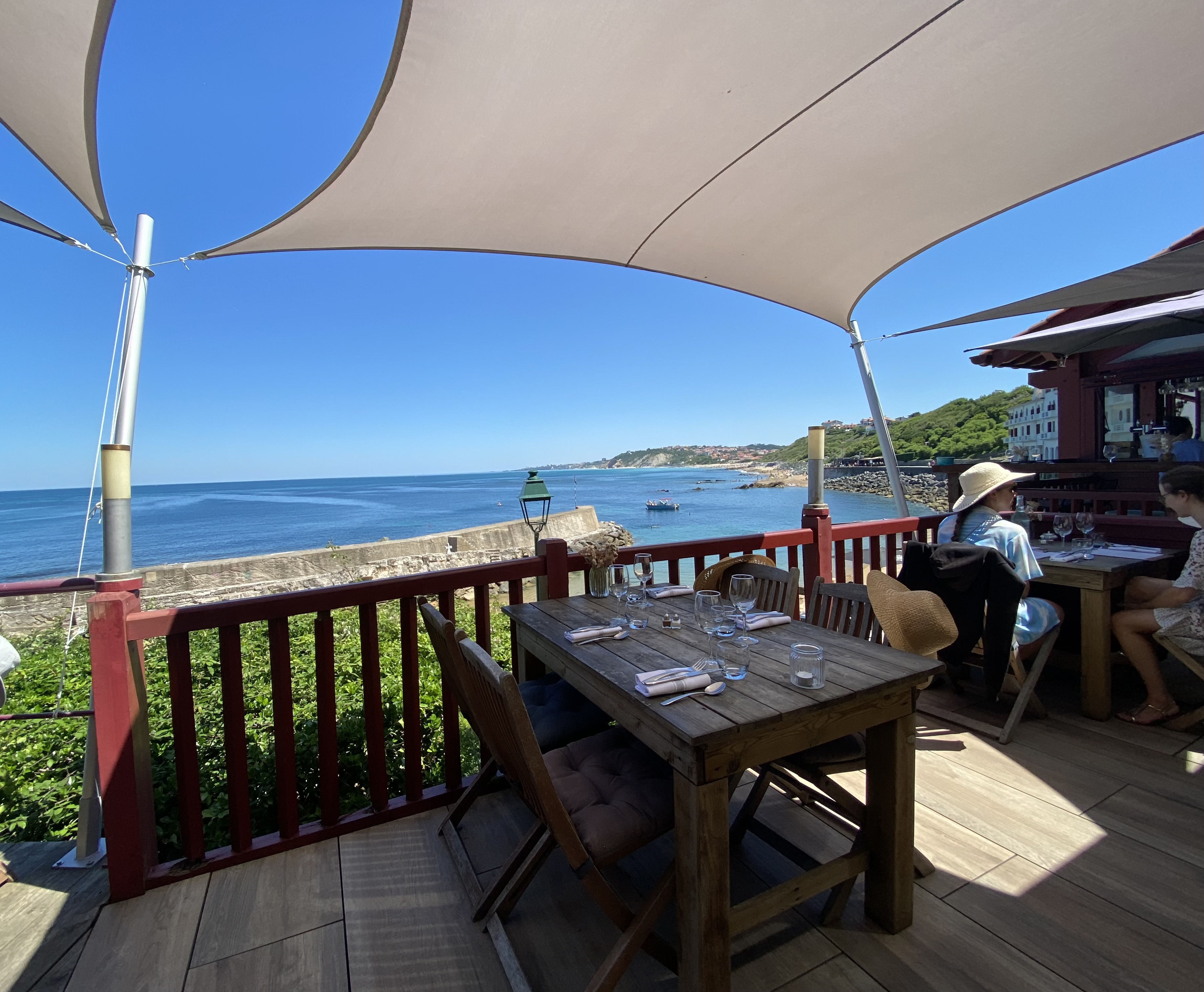 Cadre magnifique et belle vue sur l'océan Restaurant sur lePort de Guethary. La cuisine est très raffinée , l’accueil et le service souriant. Visité en juillet