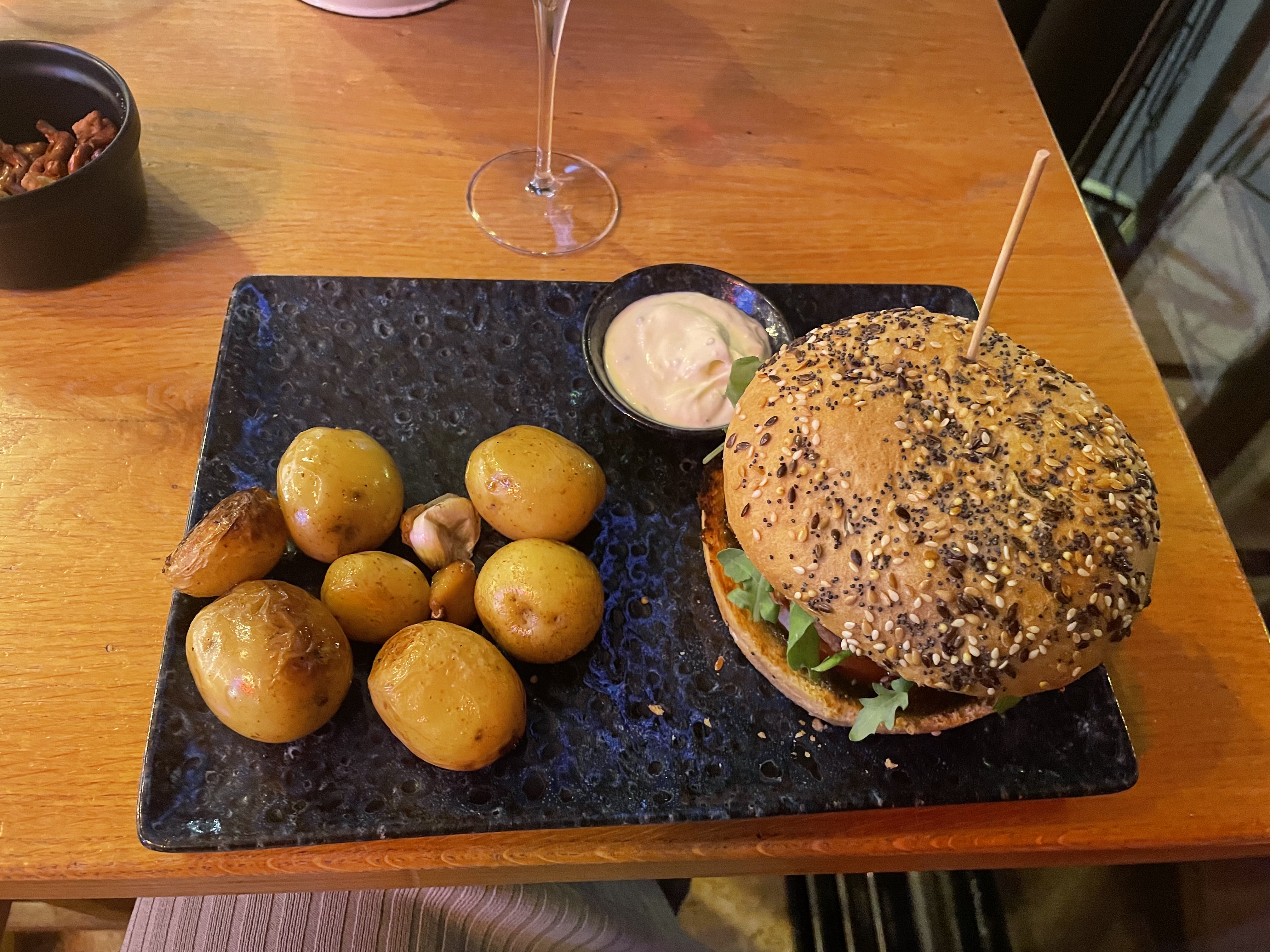 Tout au top Burger trop bon Vin exelent Entrée saumon délicieuse Je recommande