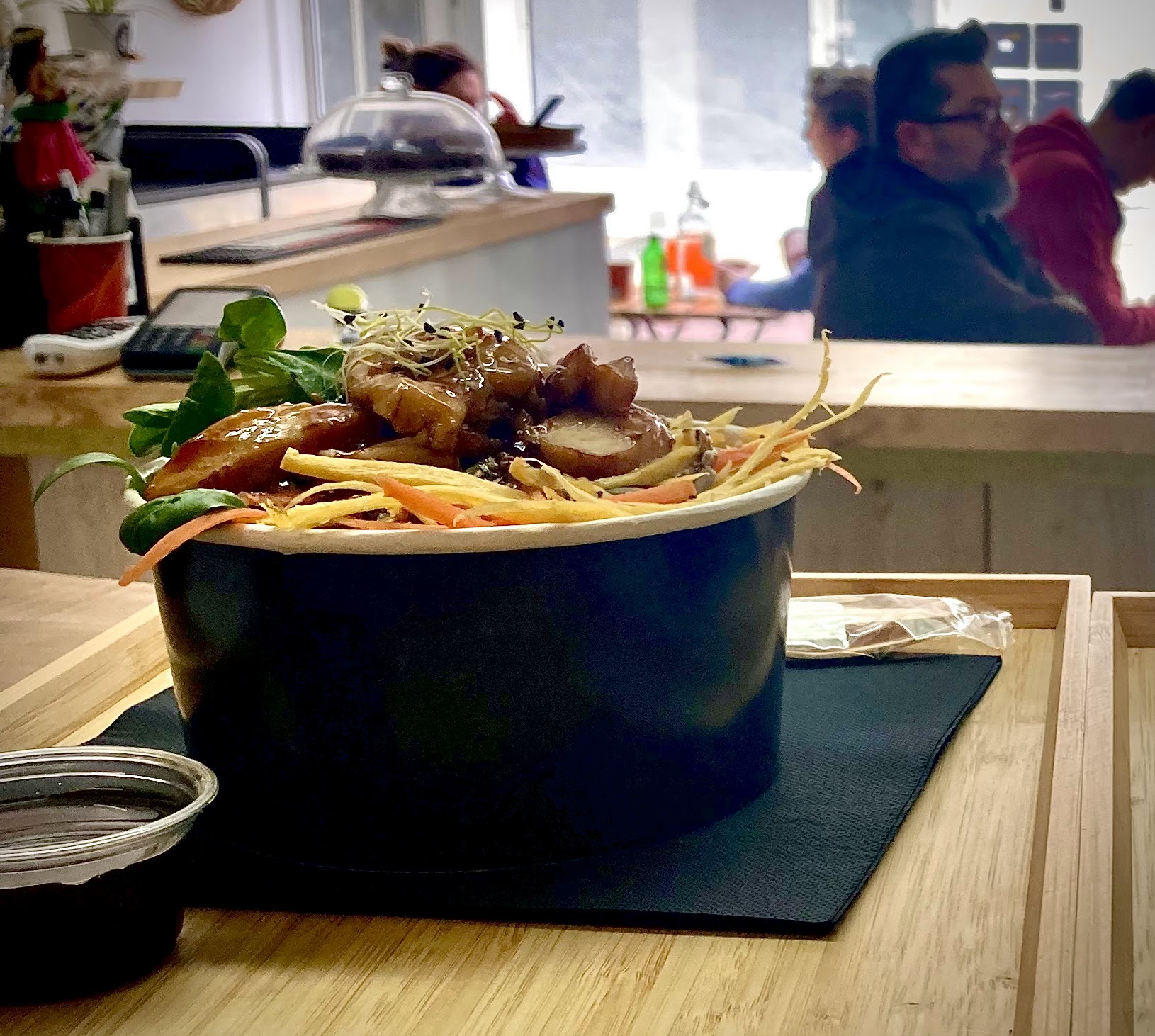 Nourriture originale, poke bowl tres bonne et bien fourni, le burger poulet yakitori est original (très bon) À bientôt