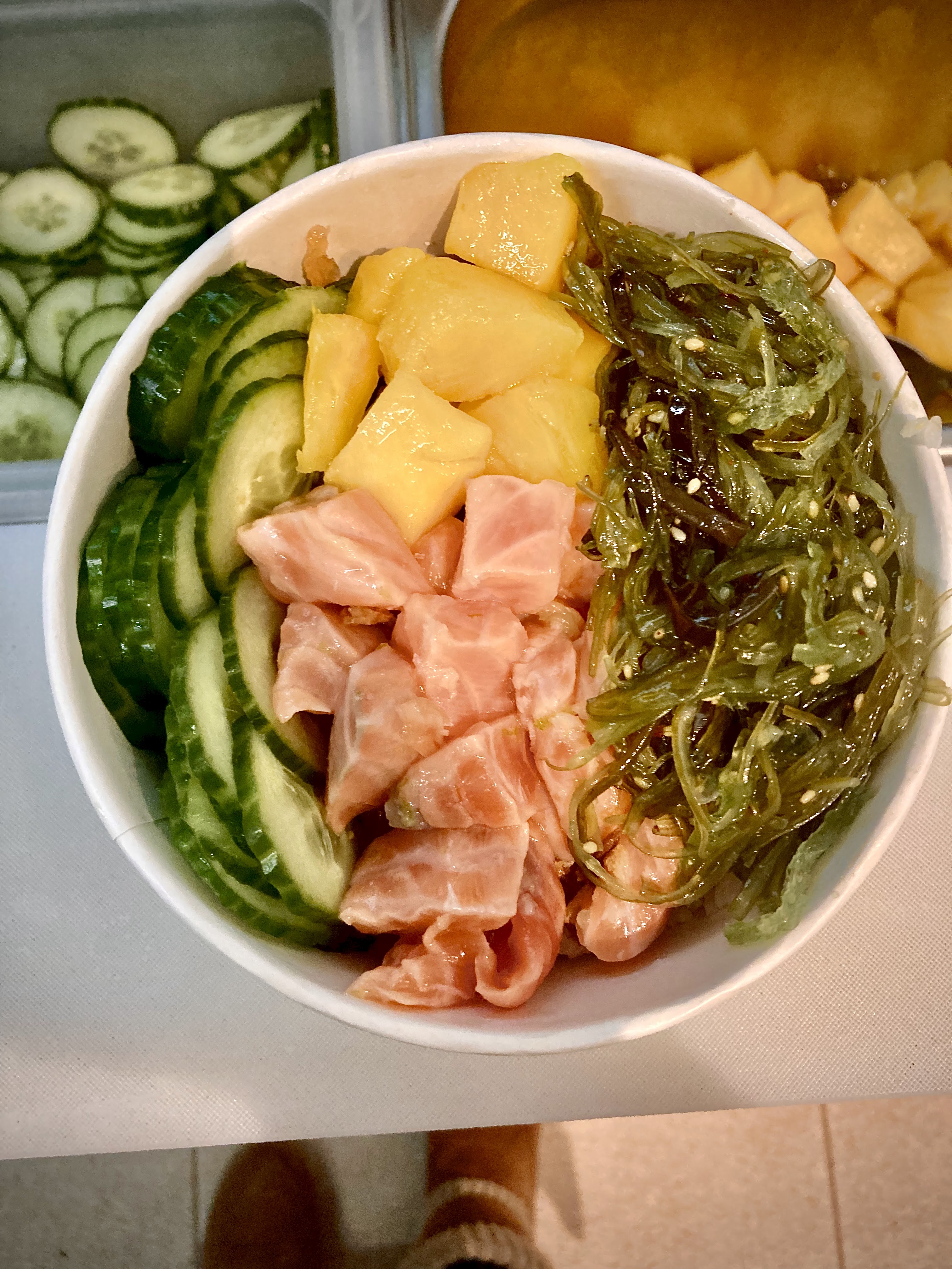 Peut mieux faire. C’était bon et frais. Par contre le riz n’était pas du riz à suchis et pas de choix de sauce (exotique, mangue, coco …) juste soja salé ou sucré. L’idée de pouvoir composer sa poké est super mais les petits papiers qui volent au vent c’est pas la meilleure des idées juste une planche en bois bien installée ferait l’affaire.