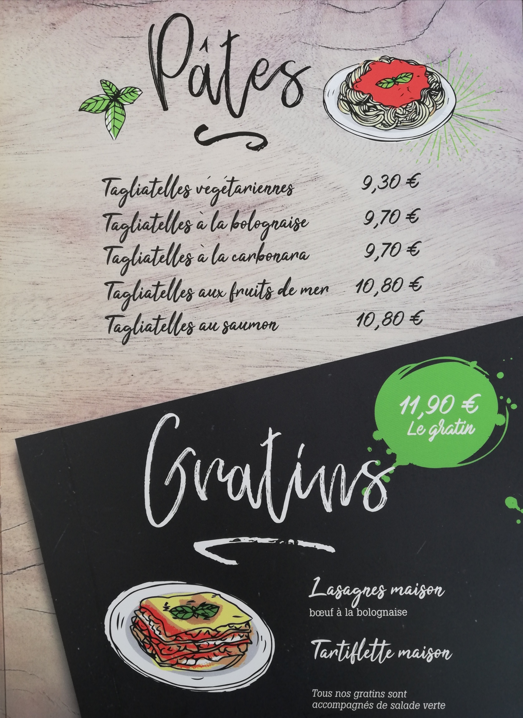 Merci restaurant très bon, super idée moitié salade moitié pizza, prix raisonnable. On a passé un très bon moment . Et les serveuses sont aussi très agréables .