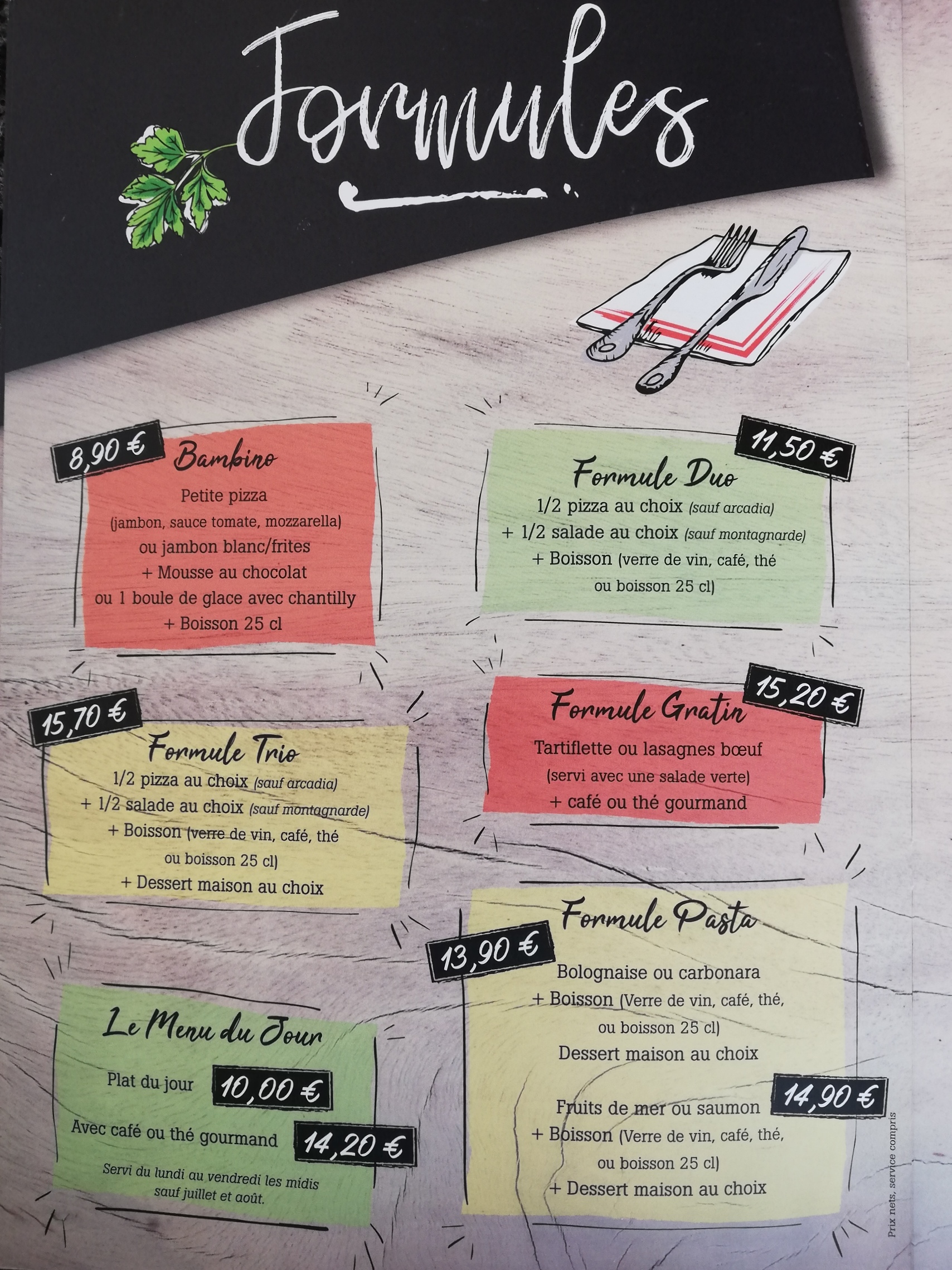 Super rapport qualité prix, les pizzas et les salades sont bonnes, le service est de qualité et attentionné ! Je recommande vivement !