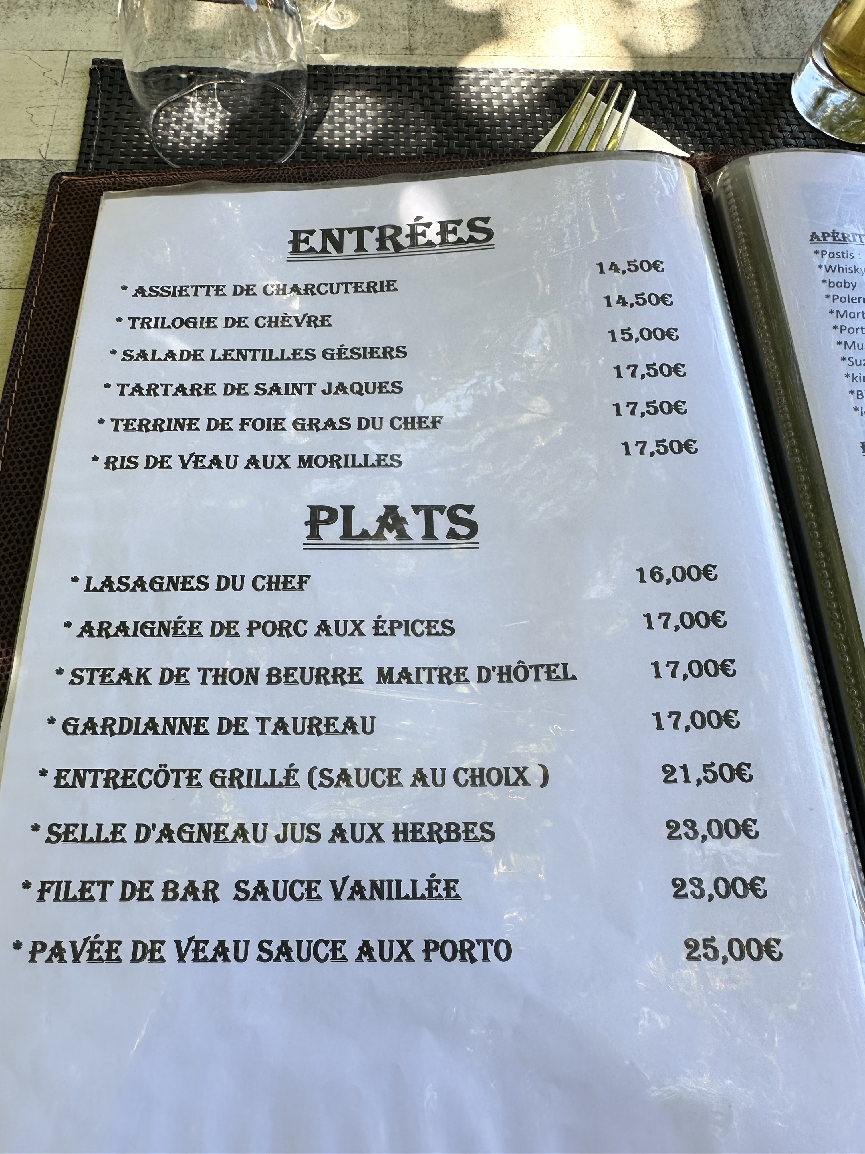 Très beau resto dans un super cadre. Repas en terrasse à l hombre. Menu à 22 ou 34 euros ou carte. Pour ma part j ai pris celui à 34 bon et copieux. Personnel sympa. J y retournerai.