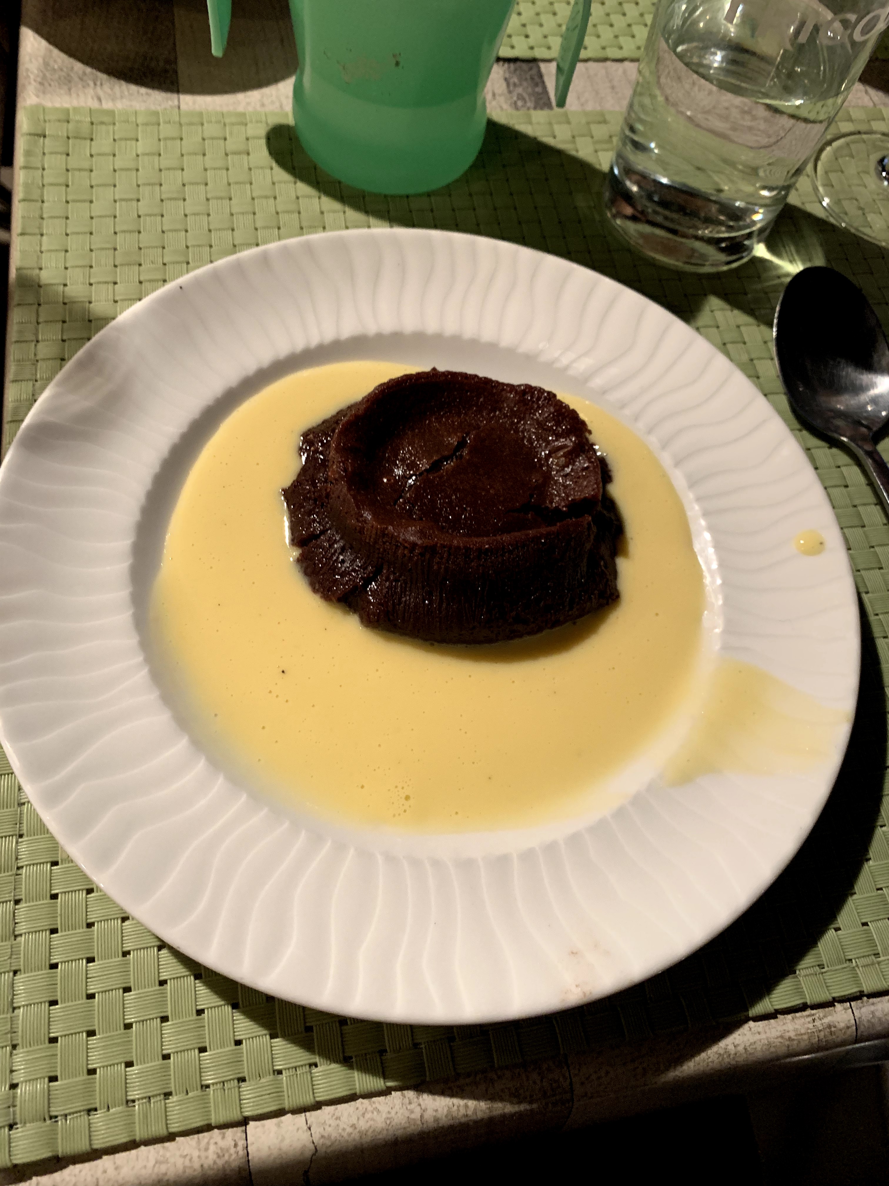 Malgré un cadre charmant, on ne peut pas en dire autant des délais d'attente (1h15 entre l'entrée et le plat principal). Et pour conclure en dessert ce fondant au chocolat....