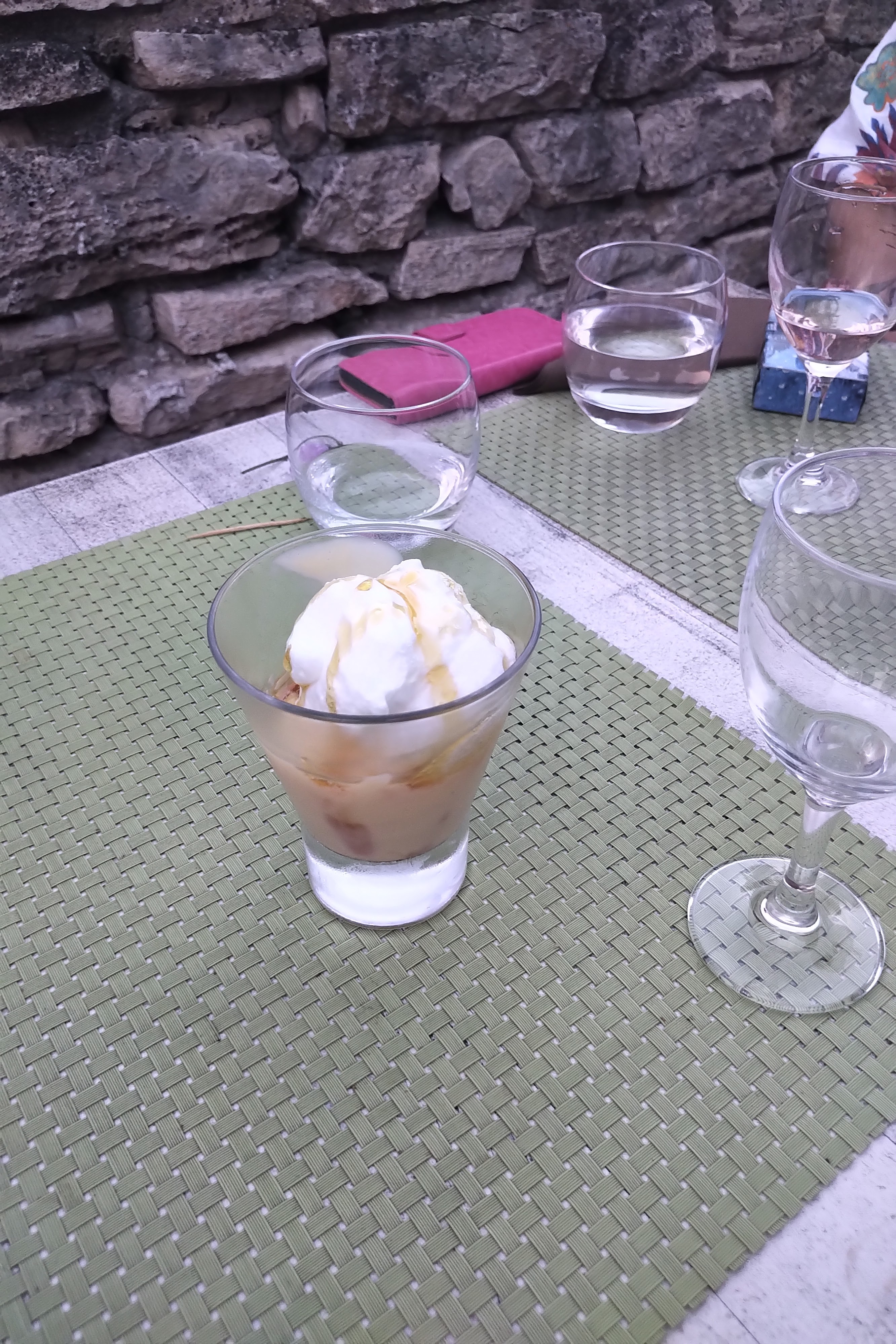 Cadre magnifique en soirée quand les petits lampions éclairent la superbe cour dans laquelle les tables sont installés. Repas excellent avec une serveuse très attentionnée et efficace. Parfait pour un diner d anniversaire.