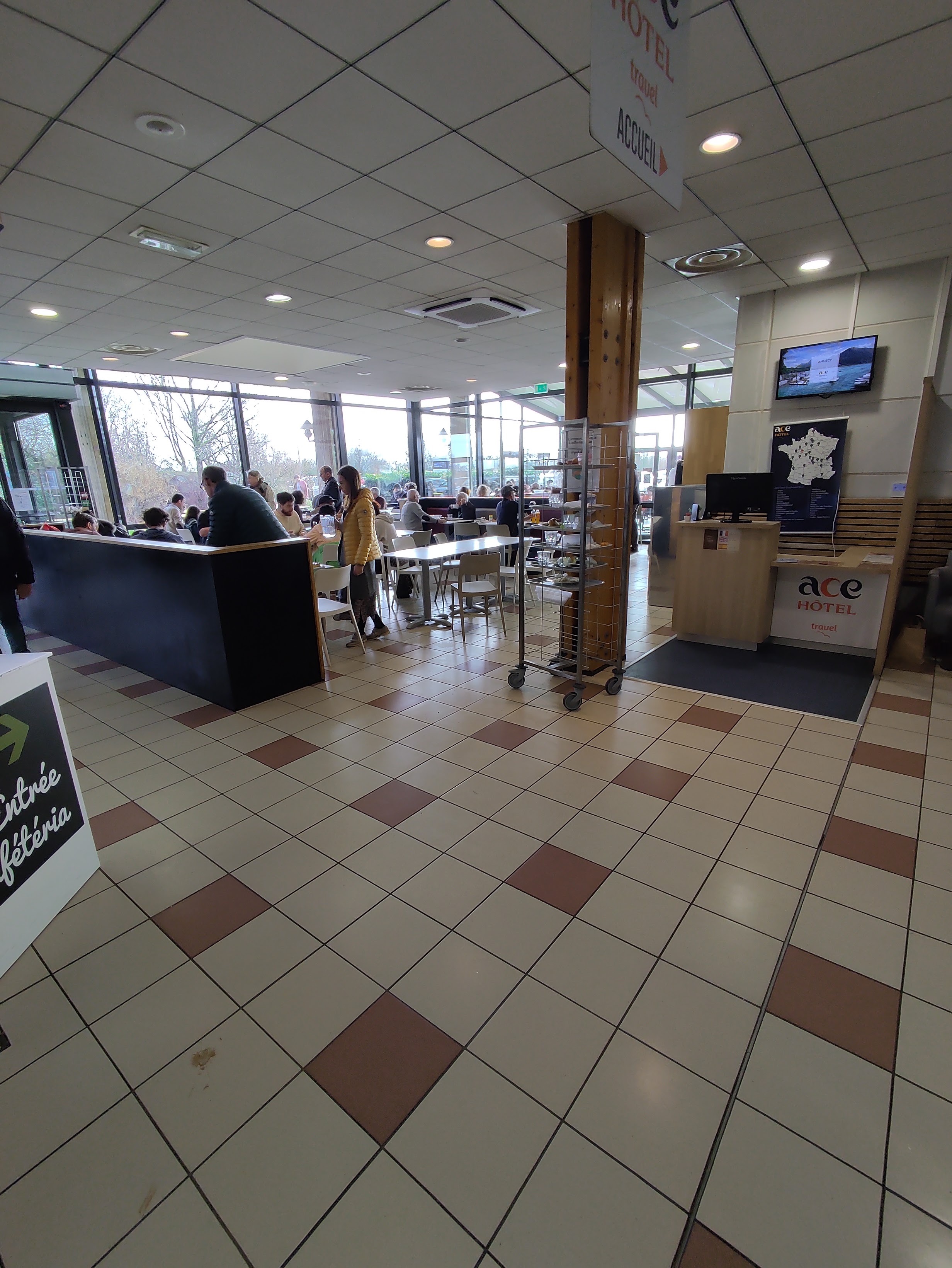 Nous nous sommes arrêté pour prendre un petit déjeuner mais pas possible de de s'asseoir et j'ai trouvé cela un peux chère mais bon on est sur l'autoroute...