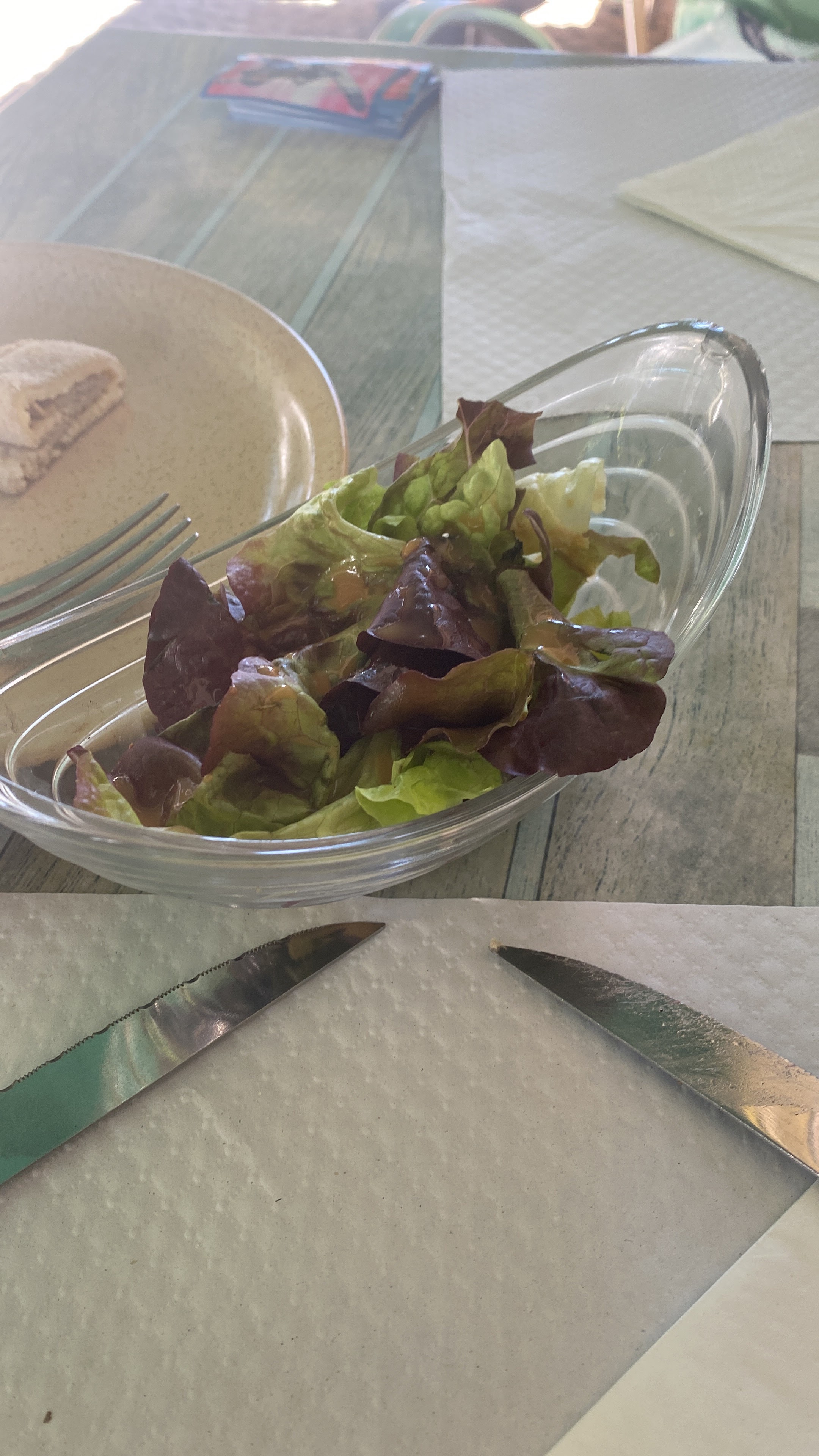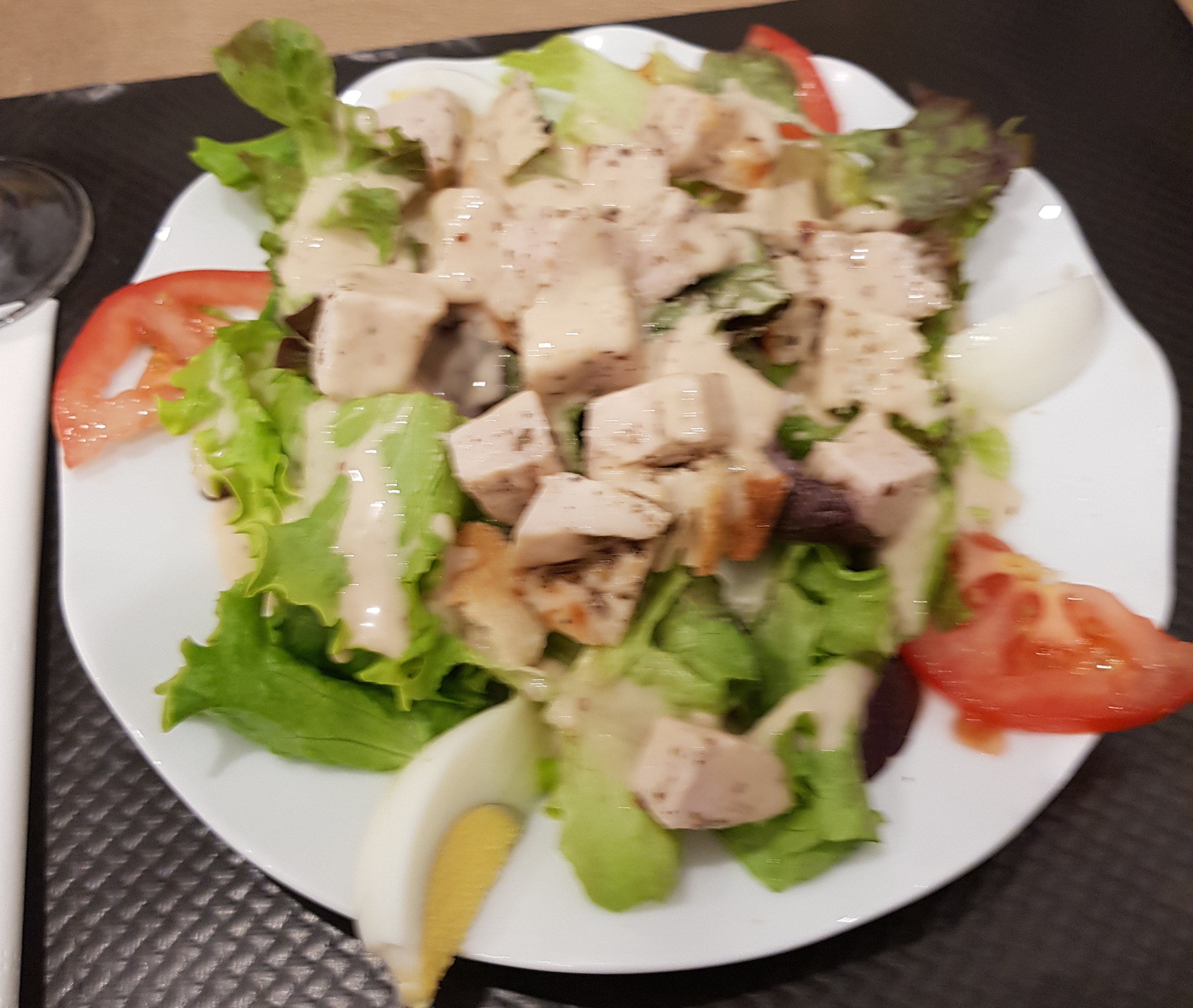 Accueil mitigé, notamment à cause d'une serveuse condescendante et désagréable. Je commande une salade de chèvre baignée d'huile (ils ont du passé la salade dans la friteuse) et ma femme une salade César noyée dans la sauce. Au dessert je prends une salade de fruit fraîchement sortie de la boite de conserve... Nous remercions le Lidl du coin pour sa généreuse participation à notre repas ! (à éviter bien évidemment)