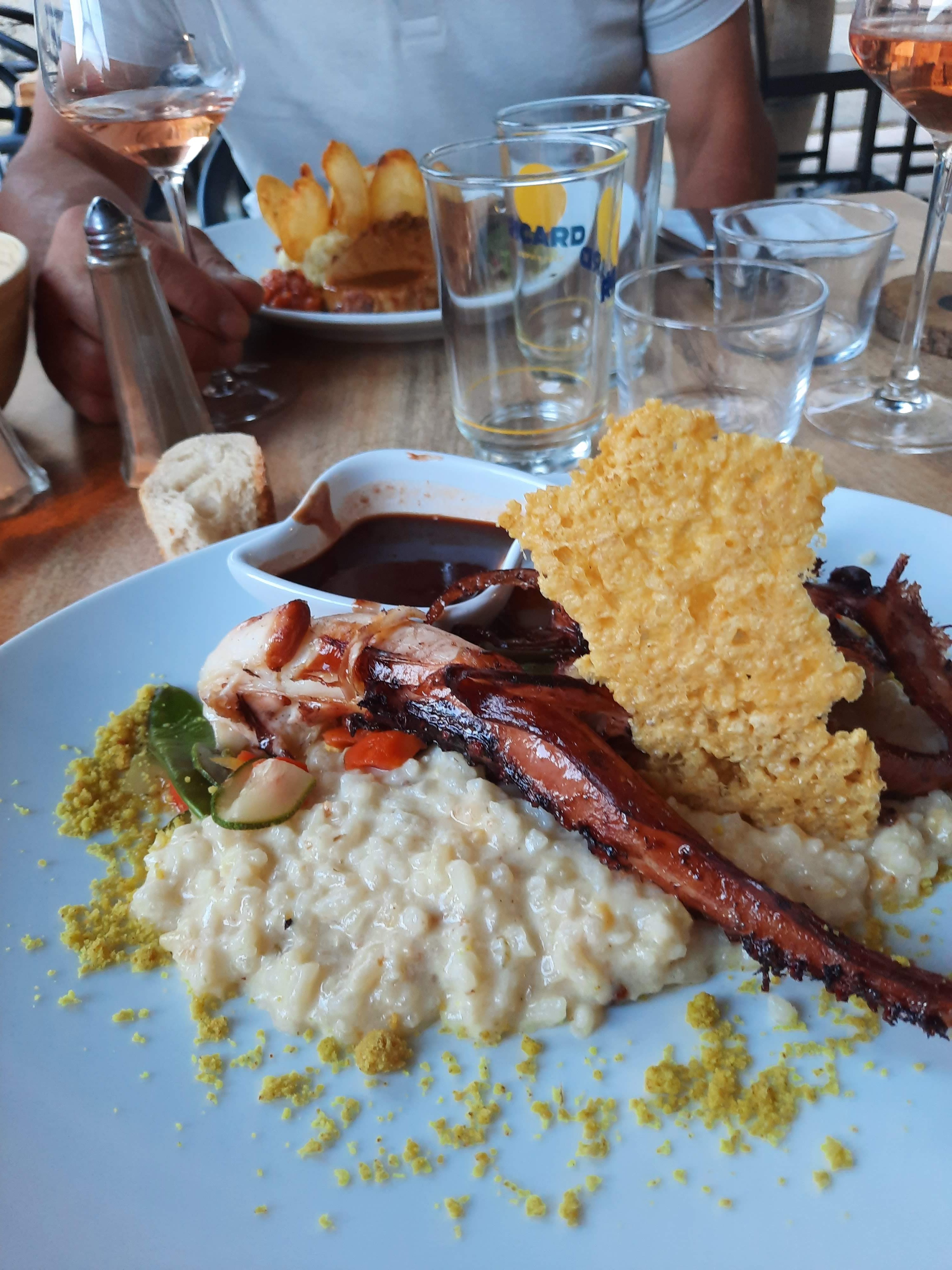 Bon restaurant dans un cadre agréable. Terrasse ombragée sous les arcades. Service un peu lent et l’intérieur du restaurant mériterait un peu de rangement