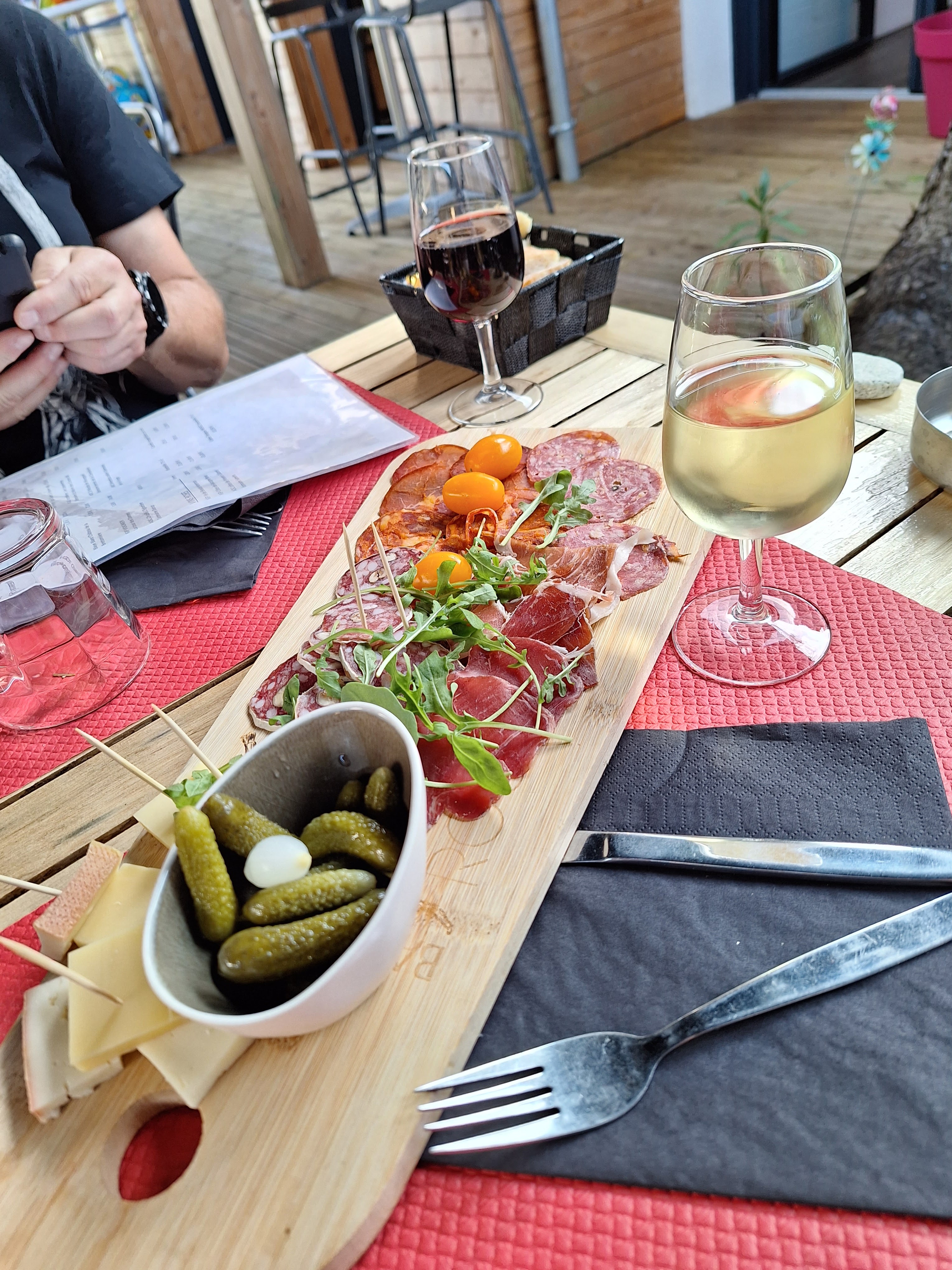 Arrivés presque à la fermeture de midi, 14h30, suite à une longue randonnée, la gérante nous a gentiment dépannés avec des boissons fraîches et une plancha charcuterie fromage et des desserts maison (la cuisine fermait). Cadre sympa, installés en terrasse. Seul resto ouvert à port mane'ch ce jour. Merci !