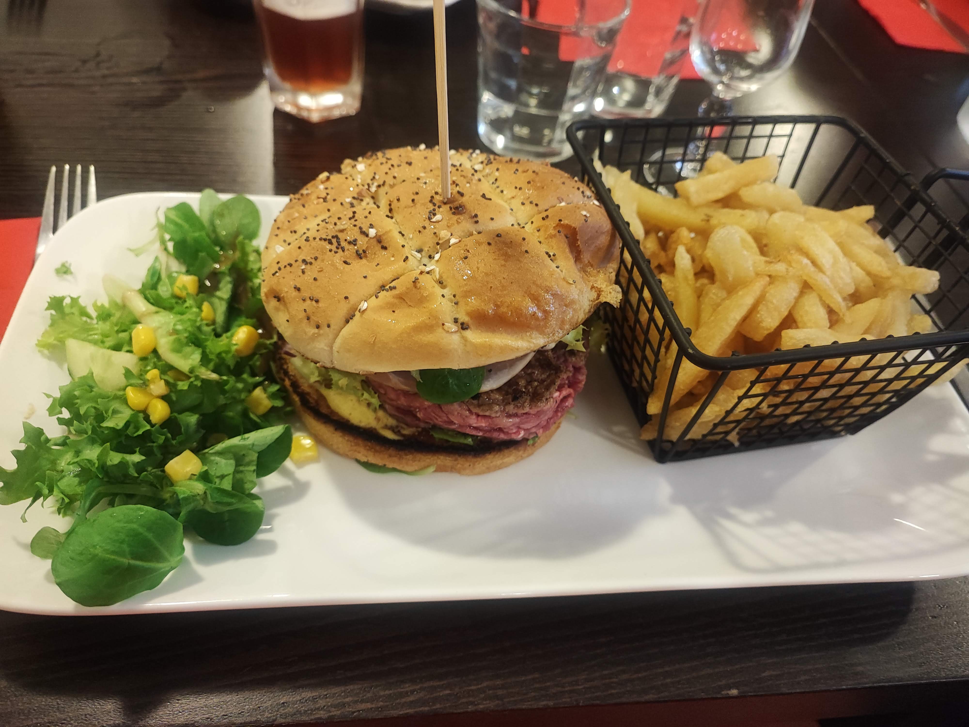 Moules et burgers très savoureux, frites un peu sans sel... steak de bœuf un peu trop fibreux.....