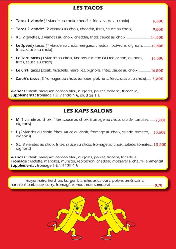 Petit établissement avec quelques tables et chaises. Pas de terrasse à priori. J'y ai pris des frites à emporter. Sauces payables en plus. Prix correcte. Qualité des frites... pour des ch'tis.... moyen même si les frites sont cuites en 2 bains, on se demande où ils se fournissent en frites.