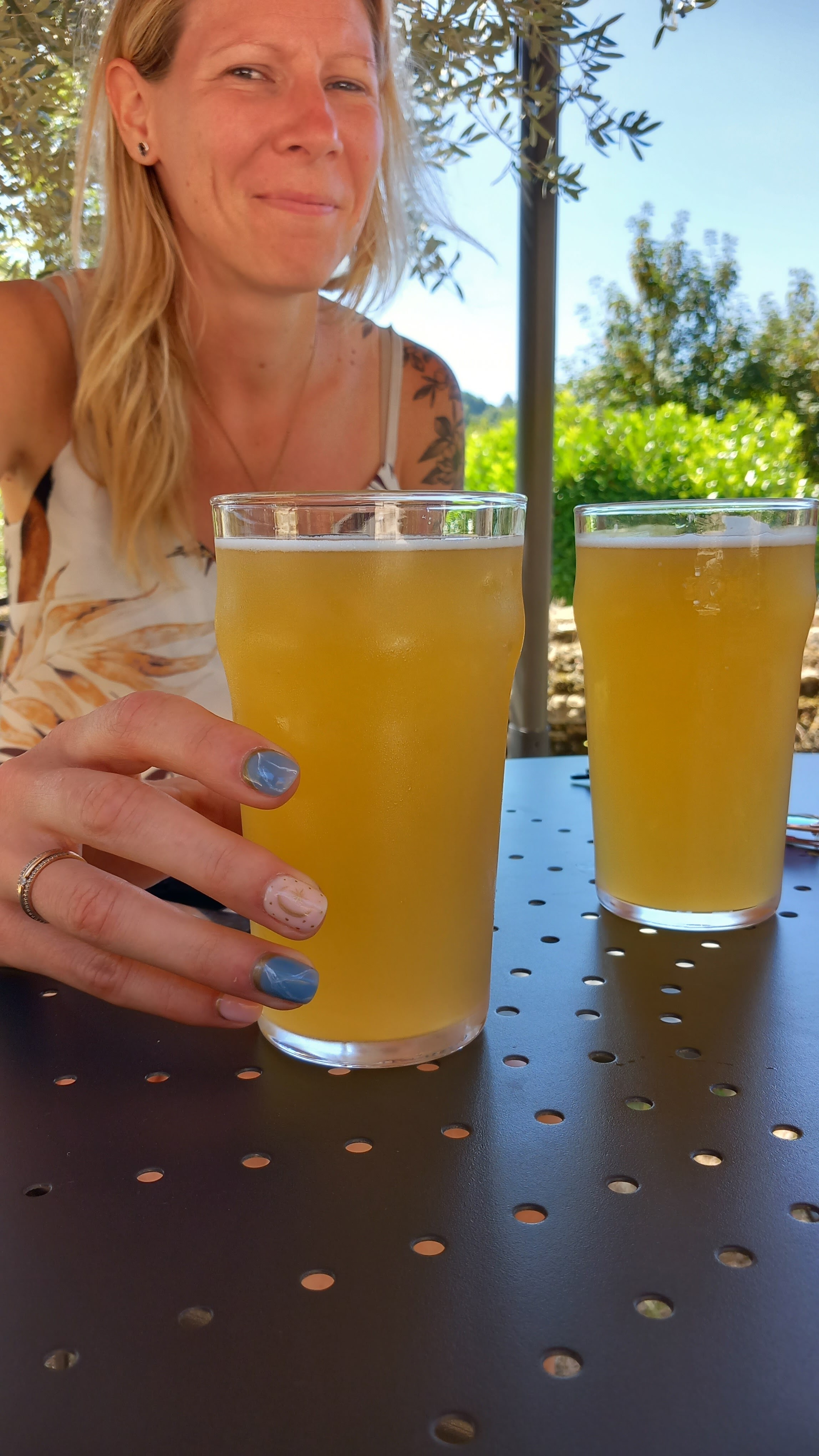 Un moment sympa et calme dans un lieu sympa et calme ! Parking juste à côté (que la petite rue Pablo Picasso à traverser), accueil agréable, nous n'aimions pas un composant de notre planche, il a été remplacé par un autre, les produits sont excellents, les vins aussi, et que dire des glaces artisanales noix et fraises périgourdines, un délice ! De plus, une myriade de montgolfières sont délicatement passées au-dessus de nous, waouh... Une mention toute particulière pour la gentillesse d'Arlette !