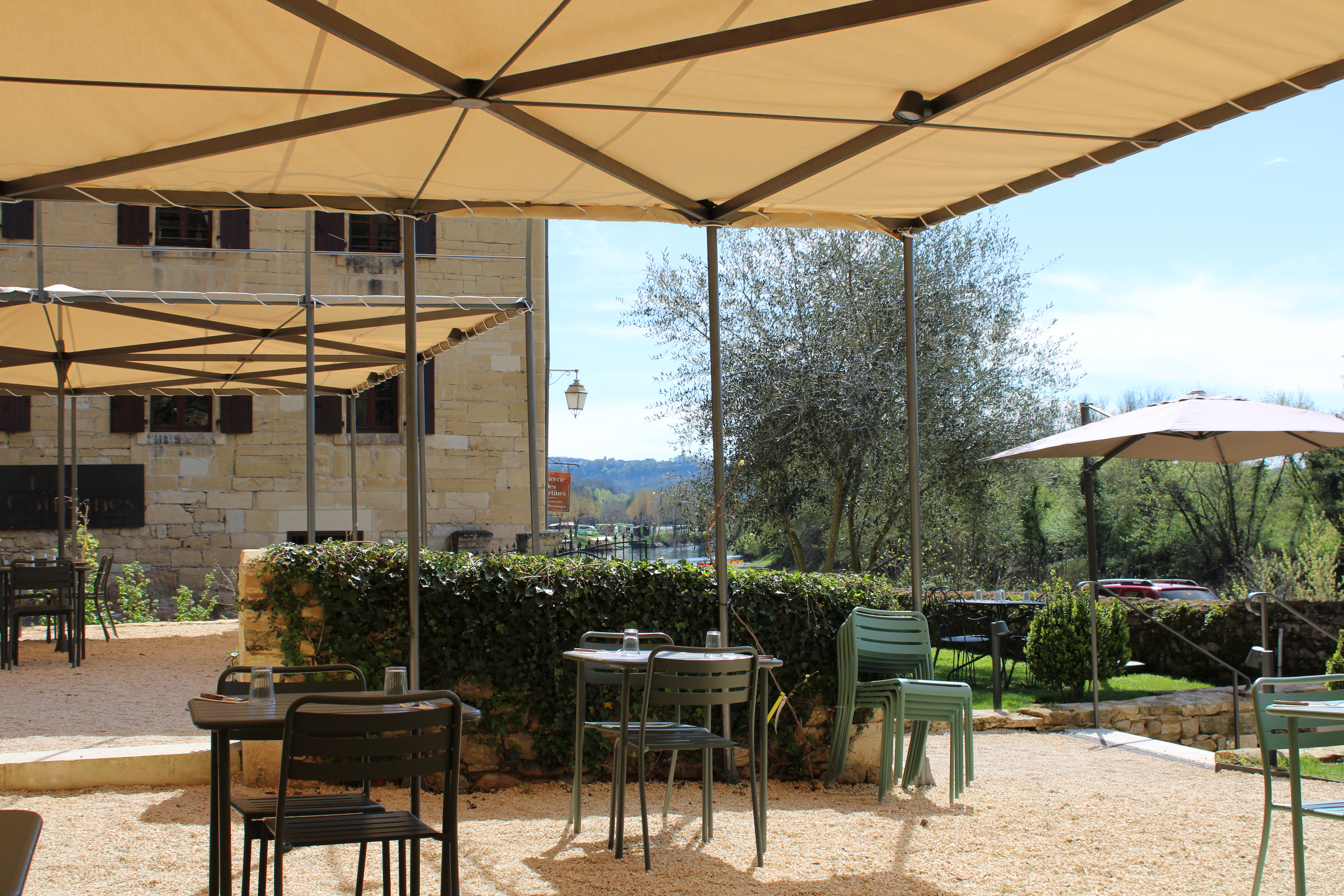 Calme et ambiance sympa avec au second plan la Dordogne . Génial...Des serveuses d'exception.