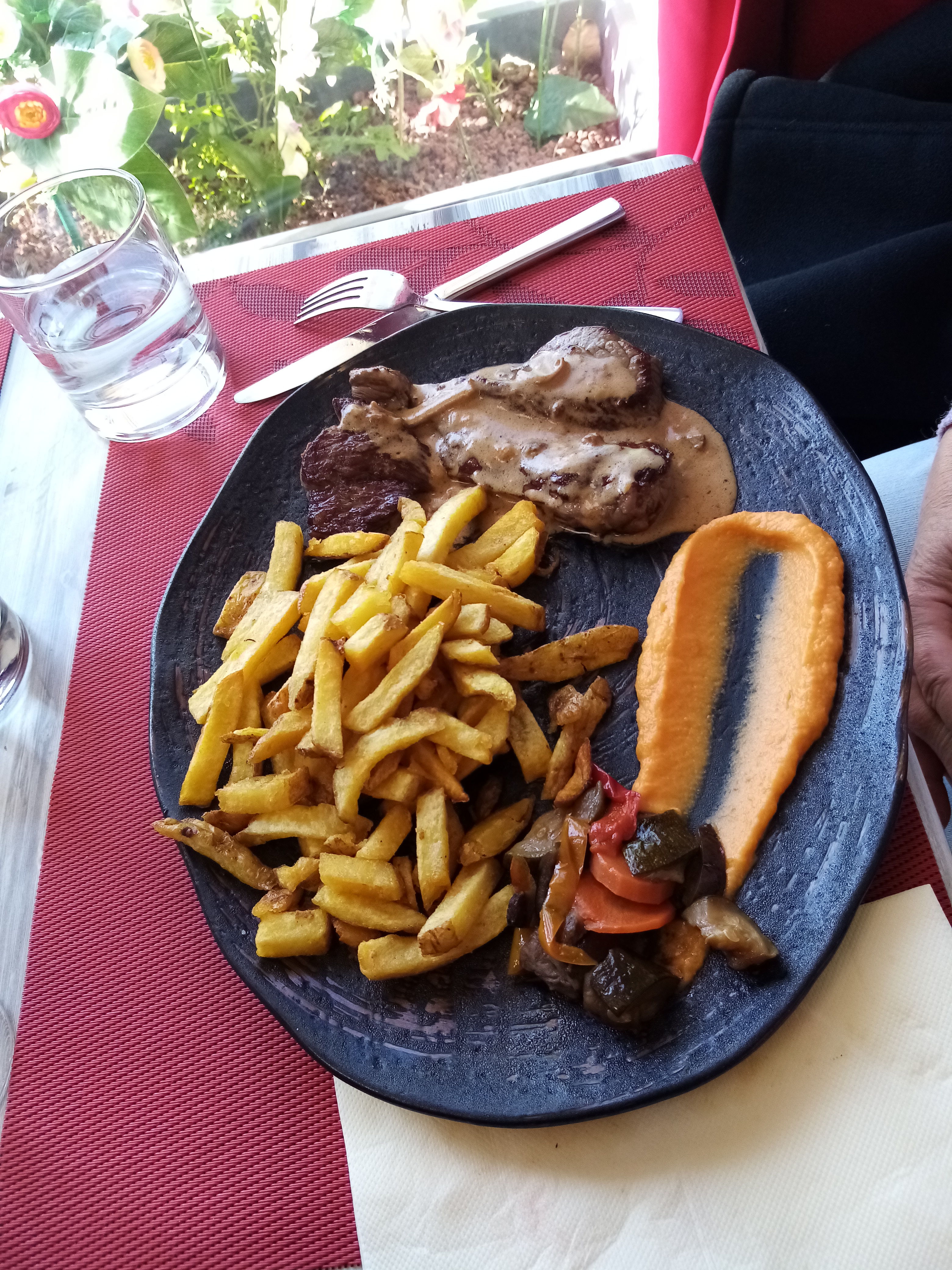 Posté le 08/07/2023 à 10:17"1ère fois que j'allais dans ce restaurant. Très surpris et en bien. Les plats sont bons et généreux je dirais même copieux. La viande est excellente. Les sauces qui accompagnent les plats sont très bonnes et bien relevées. Tout était très bien de l'entrée au dessert. Le patron et la serveuse sont sympathiques et professionnel. Bon le petit bémol ...peut-être la décoration, les fleurs en plastique c'est vraiment pas top. Mais les goûts et les couleurs. Je vous conseille cet établissement."