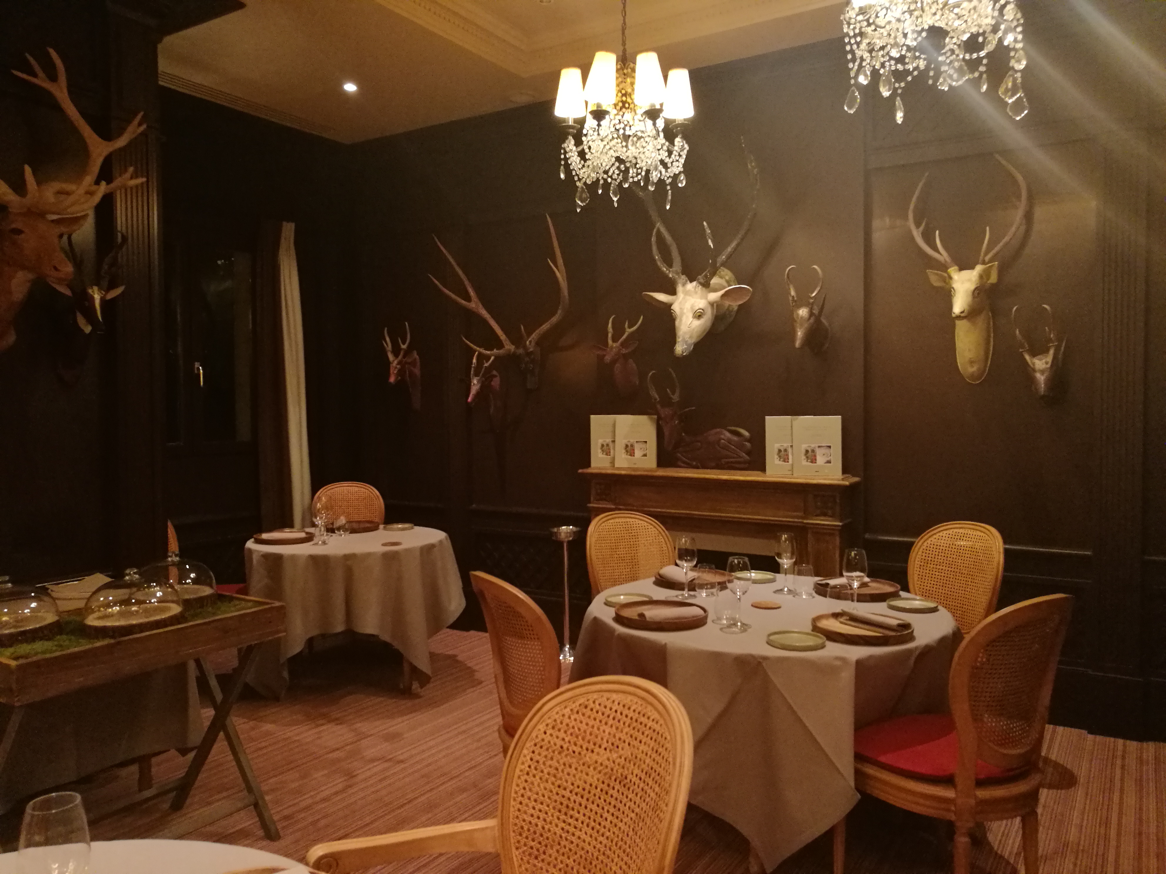 Hôtel non testé. Avis ciblé sur le restaurant gastronomique Le Corot. Salle lumineuse ; vue à la fenêtre sur un coin d’étang. Le choix du menu en 5 étapes s’est avéré en fin de repas équilibré en rapport aux portions servies. Il ne fallait à mon sens ni moins, ni plus. Les amuse-bouches surprennent d’entrée de par leurs subtils senteurs et retours de feuilles et de racines. Aucune fausse note dans la suite. La palette (pour prendre un terme de peintre) de chacun des plats composait à chaque fois un ensemble fin et complexe. Mention spéciale au ris de veau (je ne suis pas fan) que j’appréhendais mais qui a superbement fusionné. Le tarif des vins est globalement assez élevé. Les verres, certes de qualité choisis par le sommelier dans la formule Accord mets & vins ne tempère pas cette affirmation. Une attention certaine était portée à notre table par la serveuse. Ce restaurant mérite sa fameuse étoile.