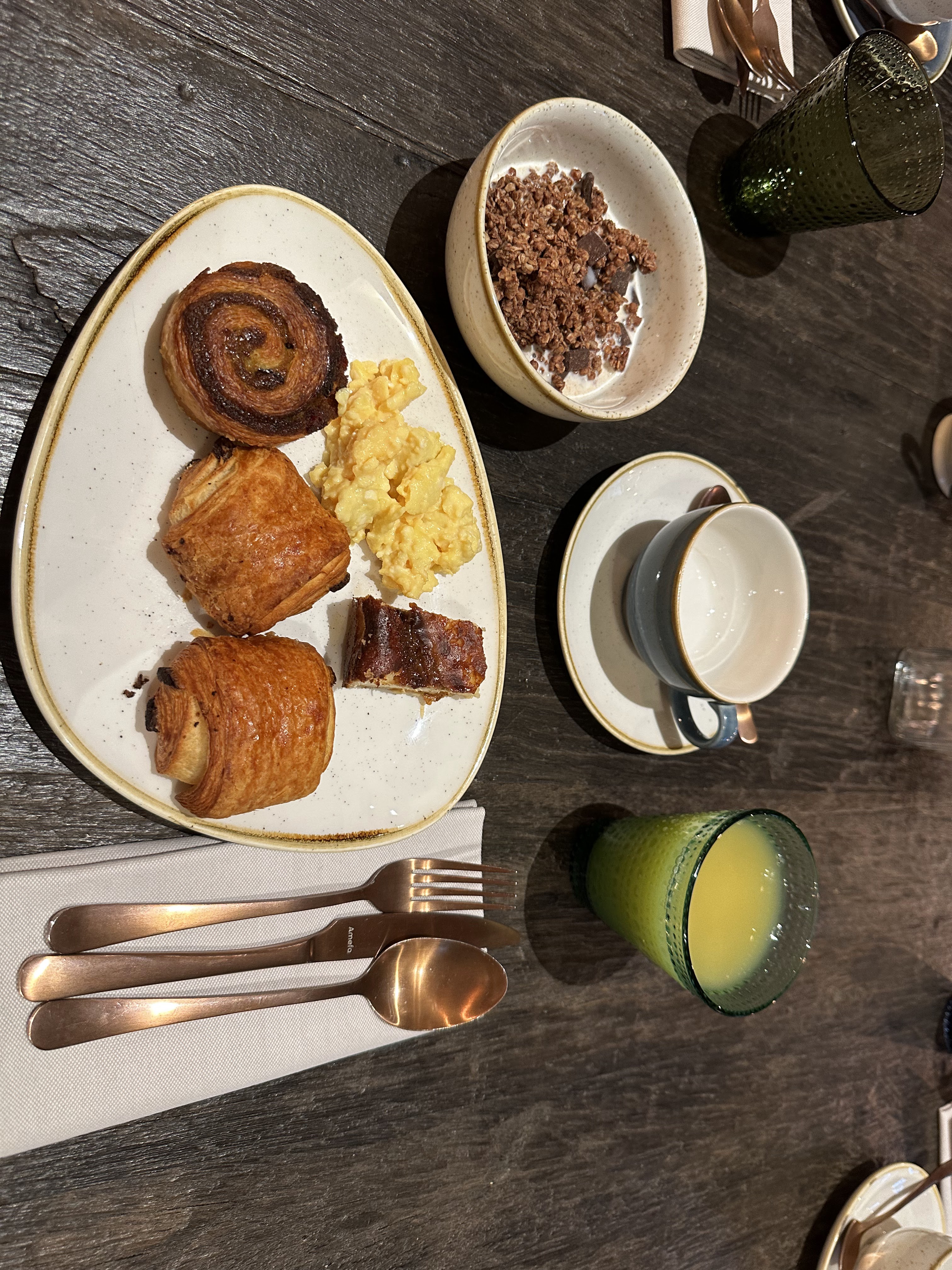Très cher On nous a dit que l on pouvez consommer à la carte avant de nous déplacer et au final il n y avait que le brunch a 45€ par personne. Les oeufs servis tièdes voir froid Le pain très dur Bonnes pâtisseries Les boissons chaudes et jus de fruits ne sont pas a volonté