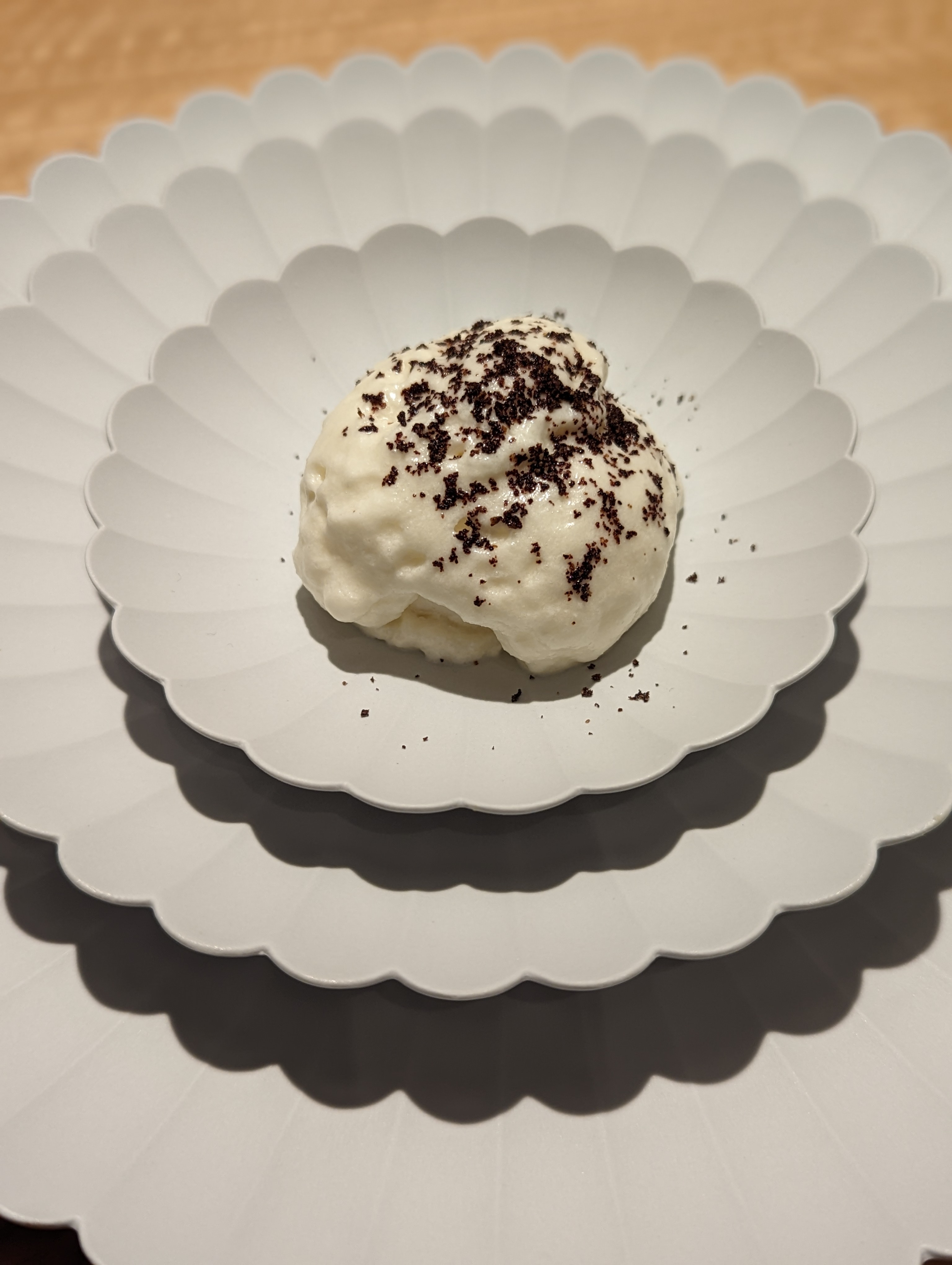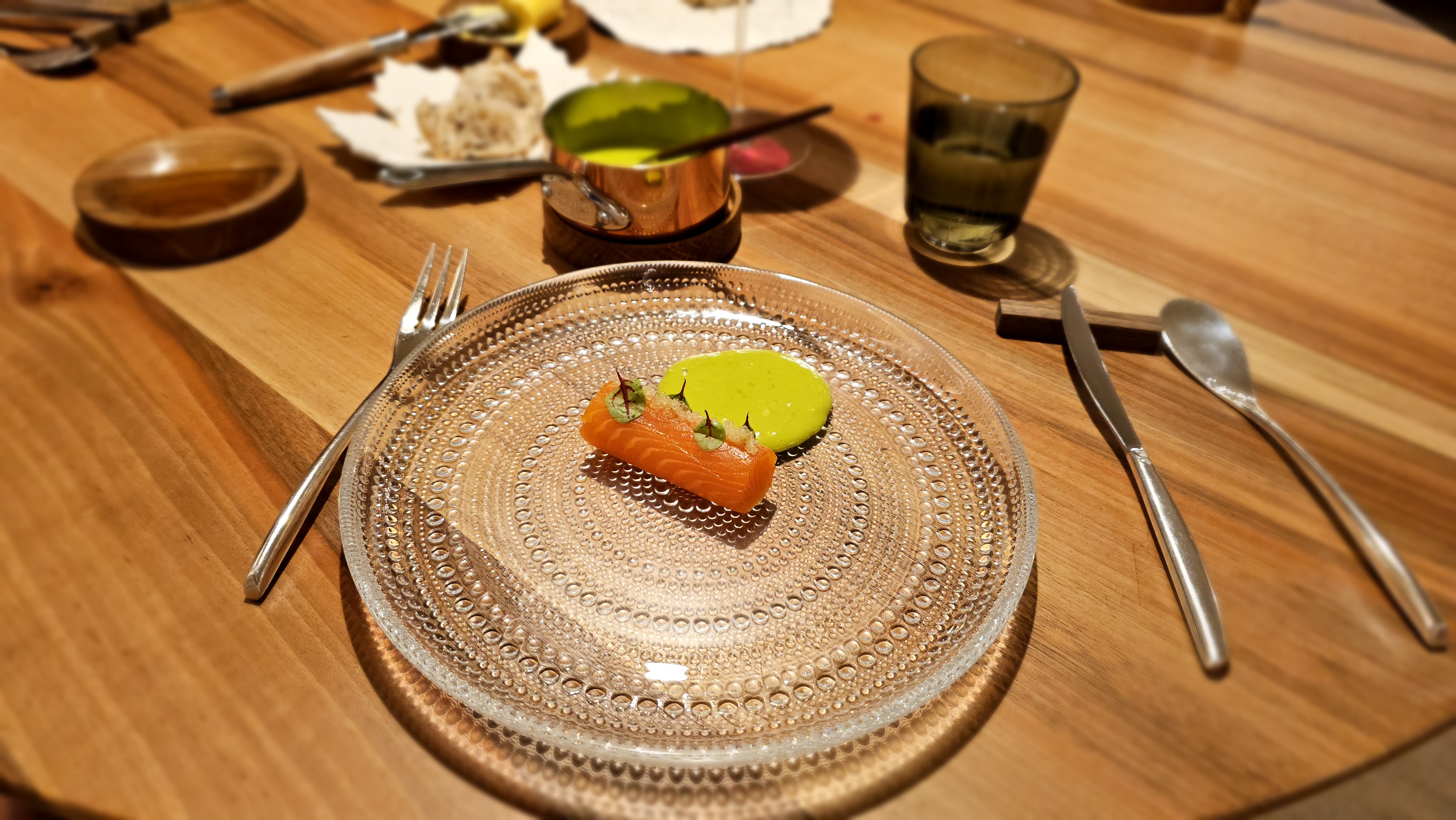 Jamais un enchainement à la carte n’a été aussi élégant et harmonieux. Chaque bouchée est unique, riche en saveurs et en surprise. Les assiettes sont complexes mais tout en délicatesse. Tous les sens sont en émoi, la vue, le toucher, l’ouïe, le goût et l’odorat. Corrélation parfaite décor et l’assiette. Grosse claque ! Bravo aux chefs Remi Chambard et Yannick Begel.