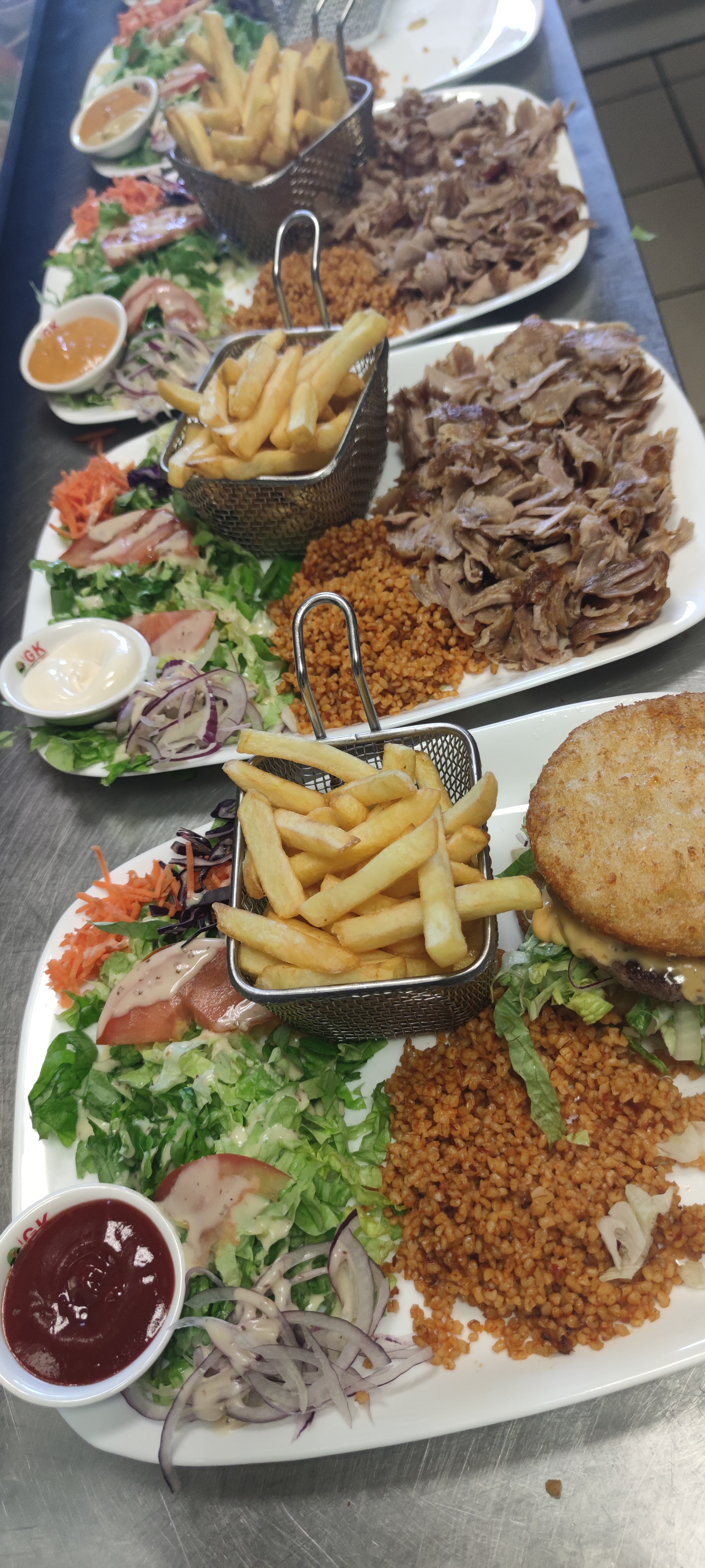 Petit restaurant rapide avec service à emporter/à table. Burgers/tacos/kebabs ainsi que des plats principaux tels que steak, agneau, végétarien. Vous pouvez téléphoner à l'avance pour commander des plats à emporter.