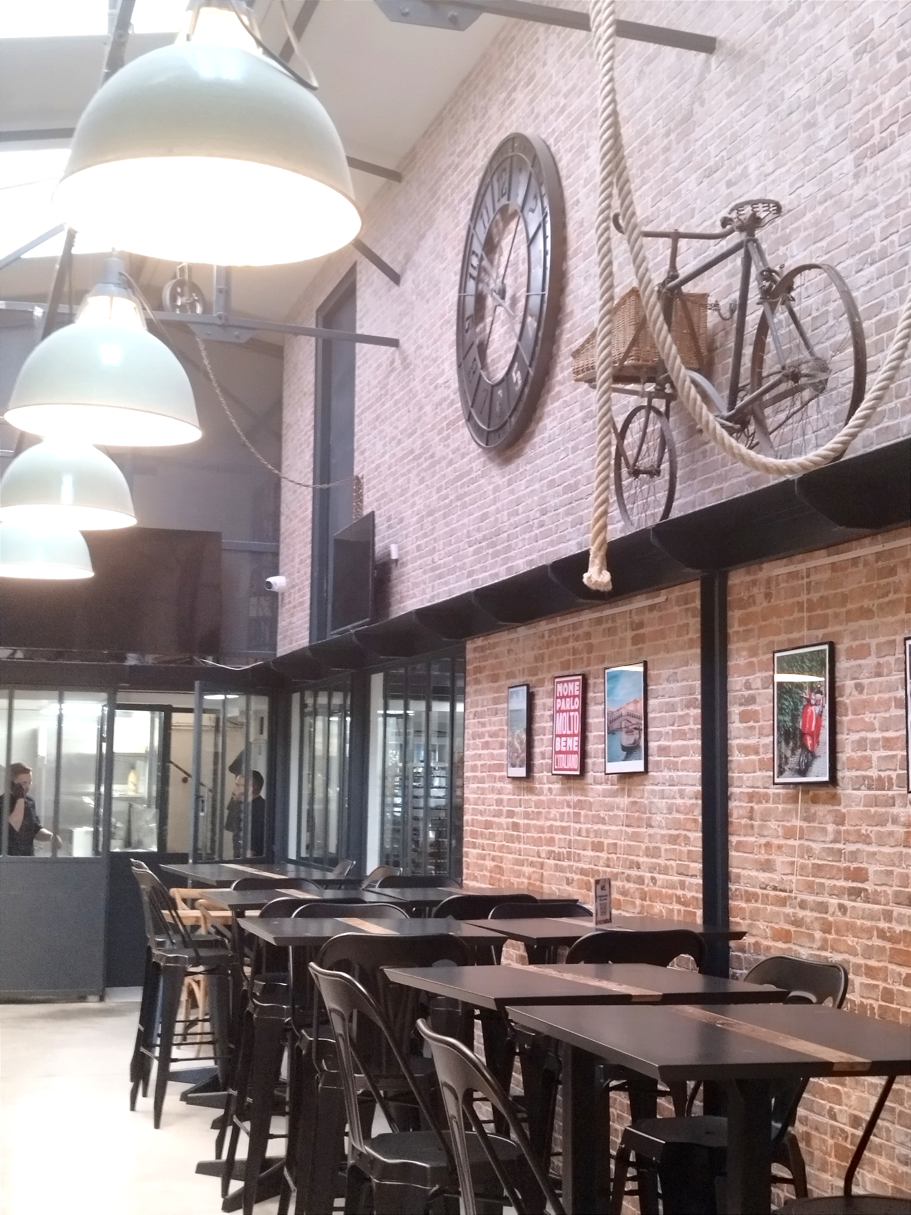 Un déjeuner au soleil entre collègues, nous découvrons les halles et la cantina où nous commandons des tagliatelles au pesto. Des pâtes sèches, collées et contenant très peu de sauce. Dommage, l endroit est agréable mais après cette expérience, nous hesiterons à revenir