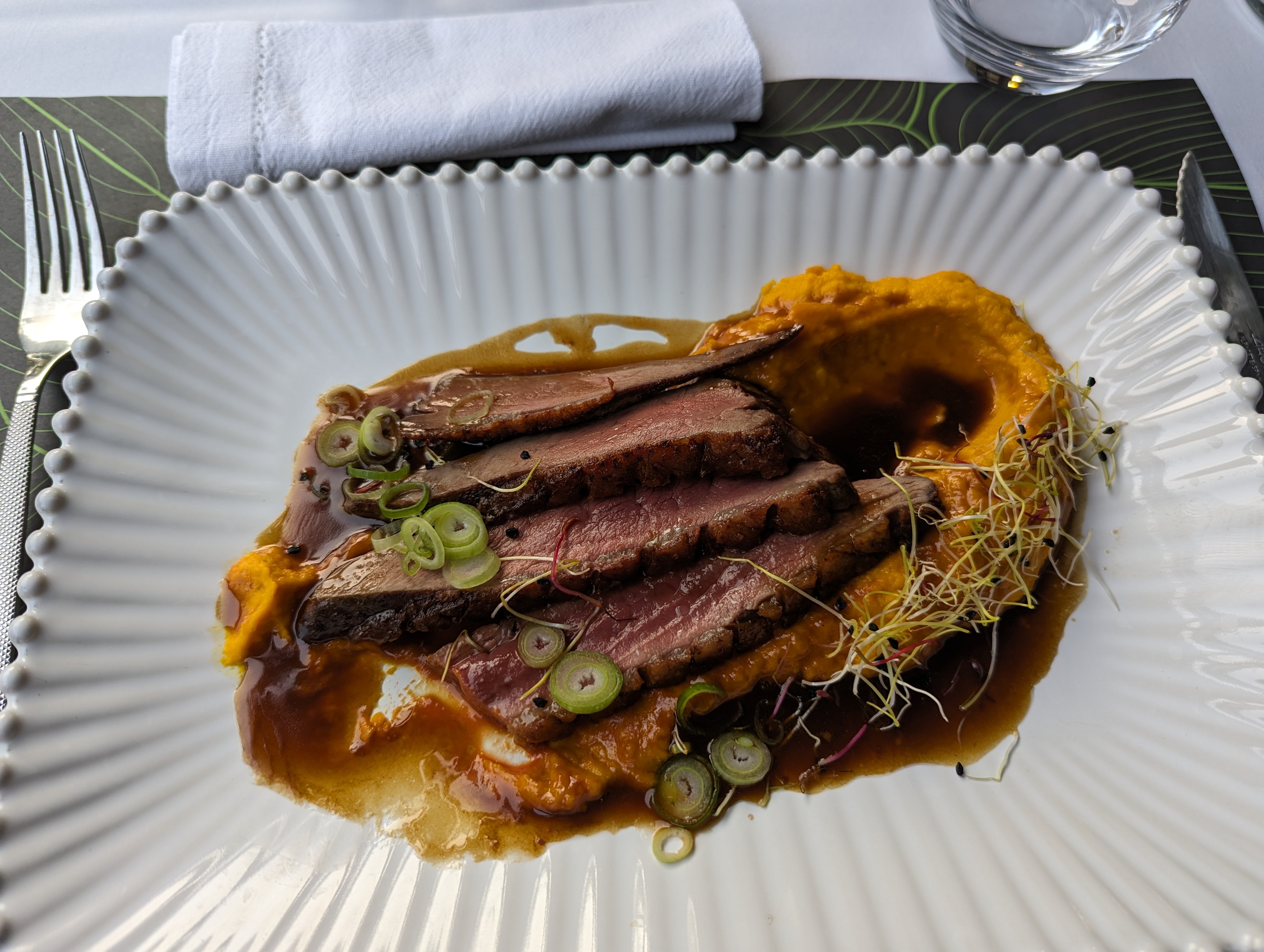 Délicieux ! J’ai commandé un magret de canard rosé avec ses légumes au caramel, miam! Très belle présentation dans cette assiette en forme de feuille. Personnel agréable, au service de ses clients. Je recommande !