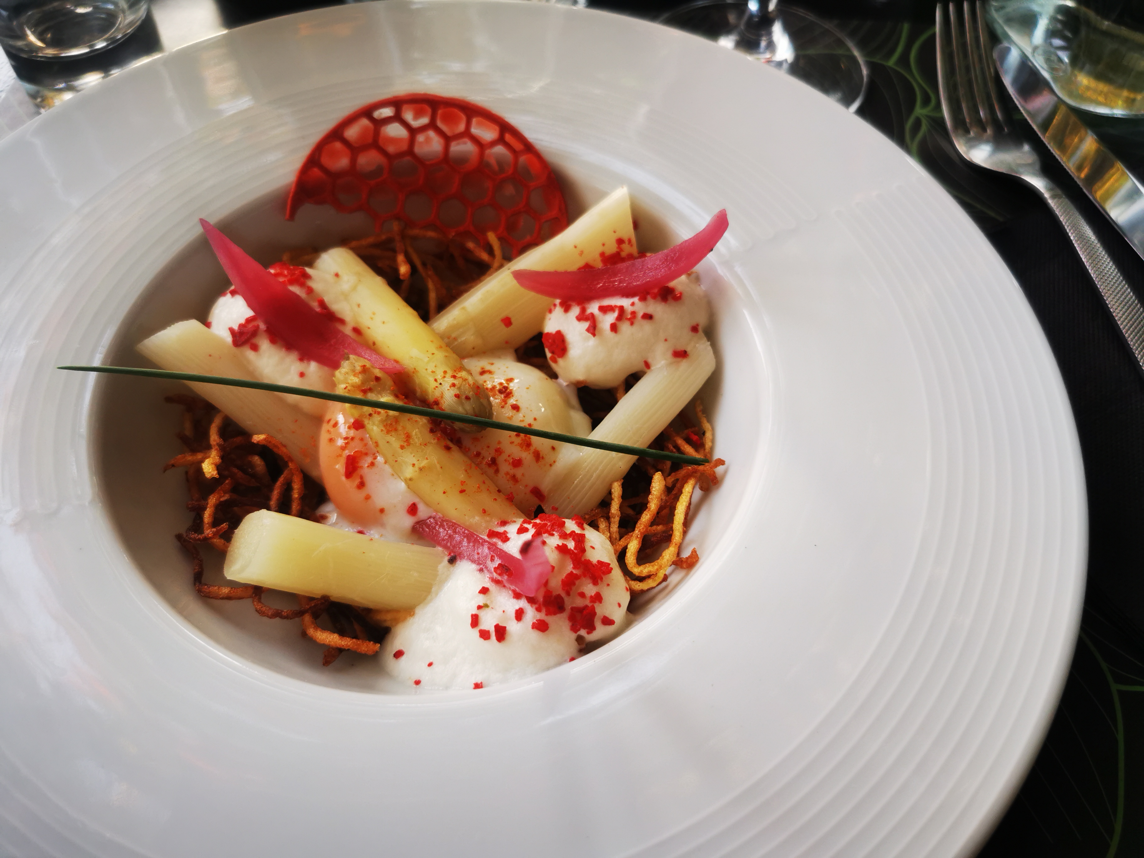 nous n’avons pas compris l’engouement pour ce restaurant cher, sur-année, le cadre extérieur est pas mal mais l’assiette est vraiment un mélange hasardeux peu intéressant, le service est bien mais attention à ce qui se passe en cuisine