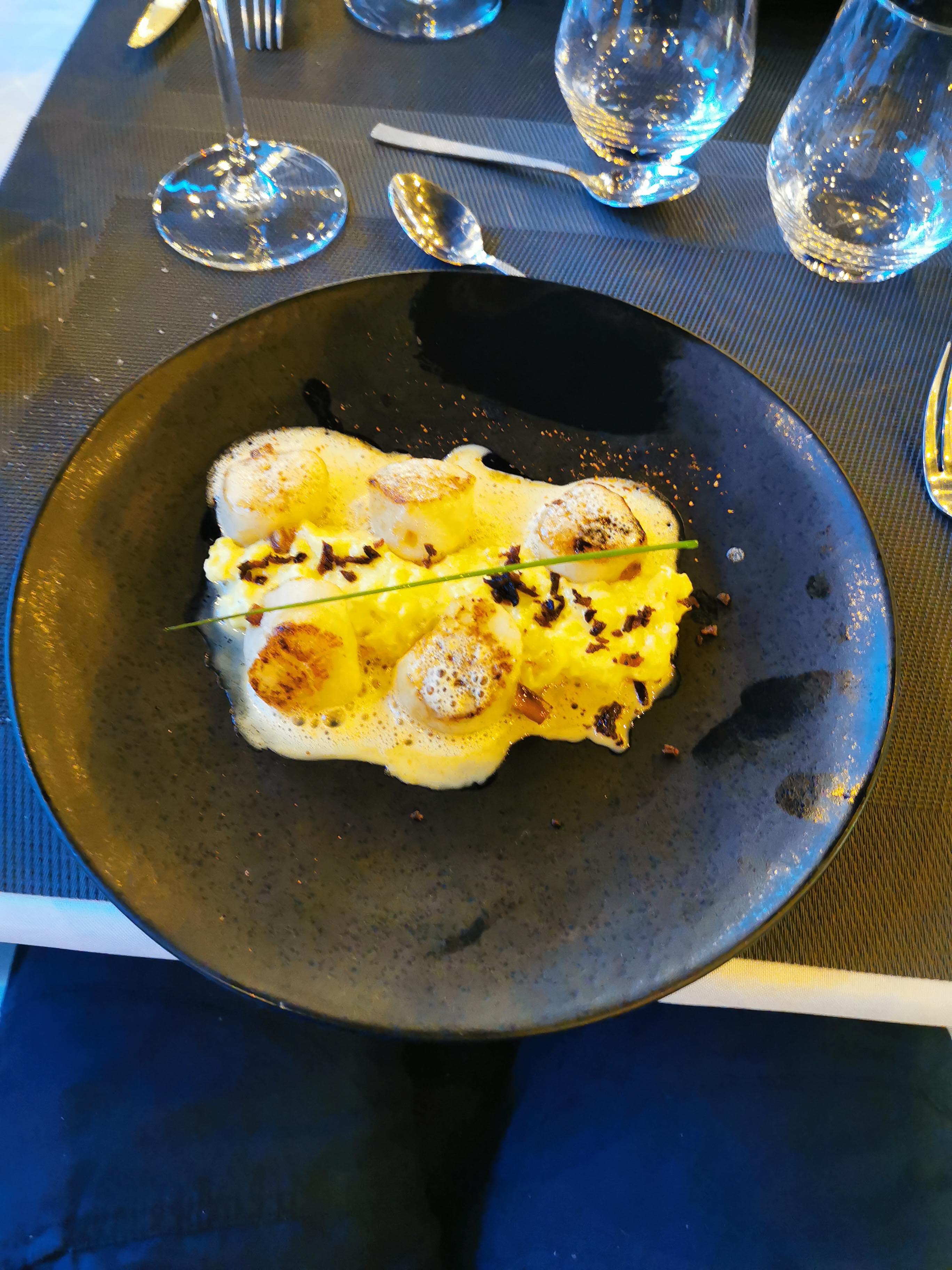 Je n'étais jamais venu a ce restaurant, pourtant j'y passe souvent devant...hier soir , réservation faite , nous nous y rendons et wahouu ,on découvre l'intérieur du restaurant avec une magnifique décoration, une serveuse très sympa et souriante nous accueille et nous accompagne a notre table. Ambiance calme Nous avons bu un verre de vin très bon et pris un risotto aux saints jacques , excellentissime, d'excellentes saveurs ,une explosion de bonheur en bouche.... Je le recommande, n'hésitez pas à y aller , nous avons un très bon restaurant dans le coin.....