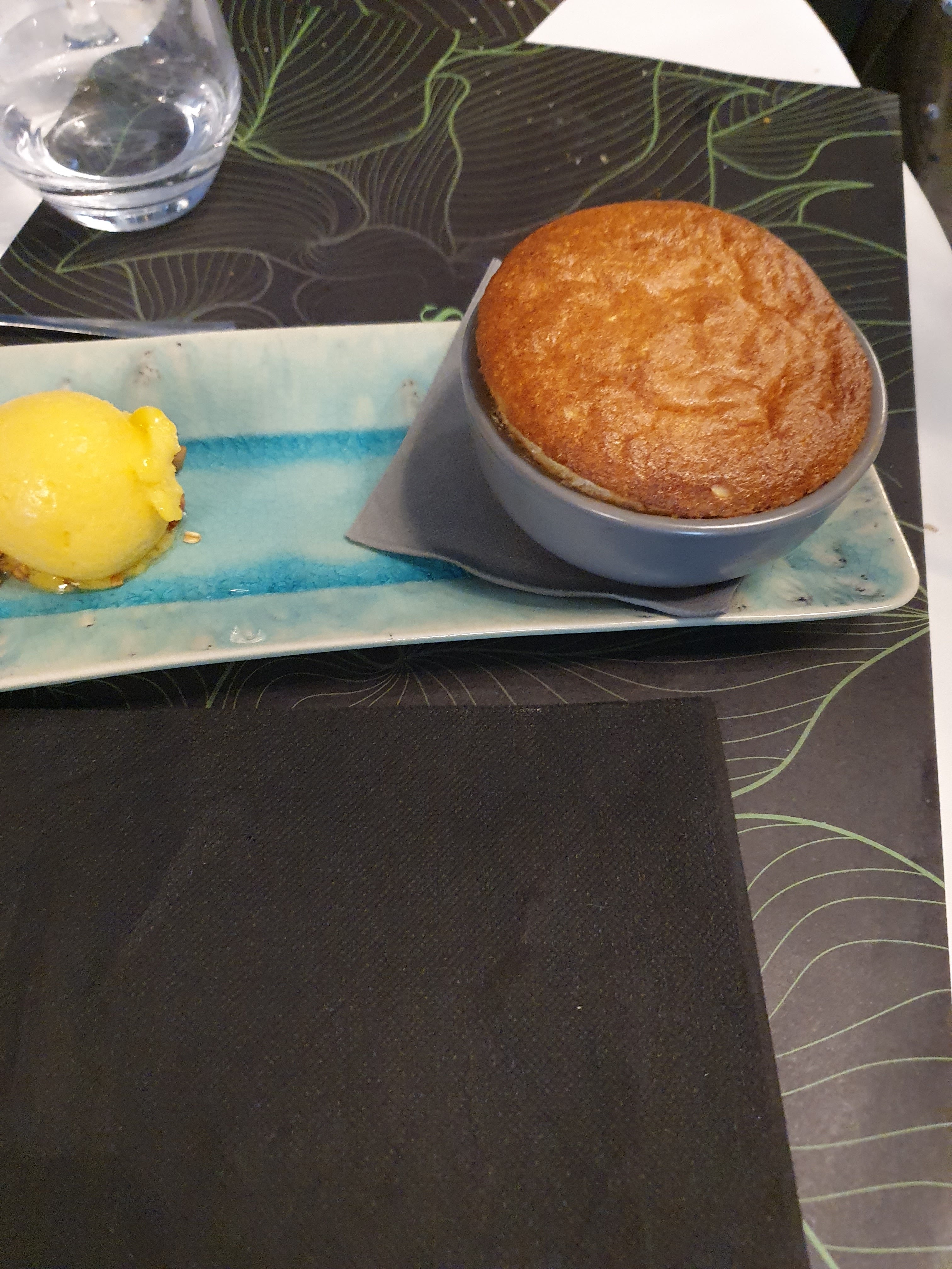 Manque de professionnalisme, le serveur commence par amener les plats et se trompe de table en laissant sur un rebord une assiette qu’il ont fini par servir 5 minutes après que nous avons rappeler pour dire qu’il avait laissé une assiette L’appellation des entrées plats desserts ne sont pas conforment, une plancha d’encornets quand tu vois arrive l’assiette tu es forcément déçu comme le millefeuille d’aubergine servi en plat n’est qu’une entrée Nous avons eu un geste commercial mais nous n’y retournerons pas