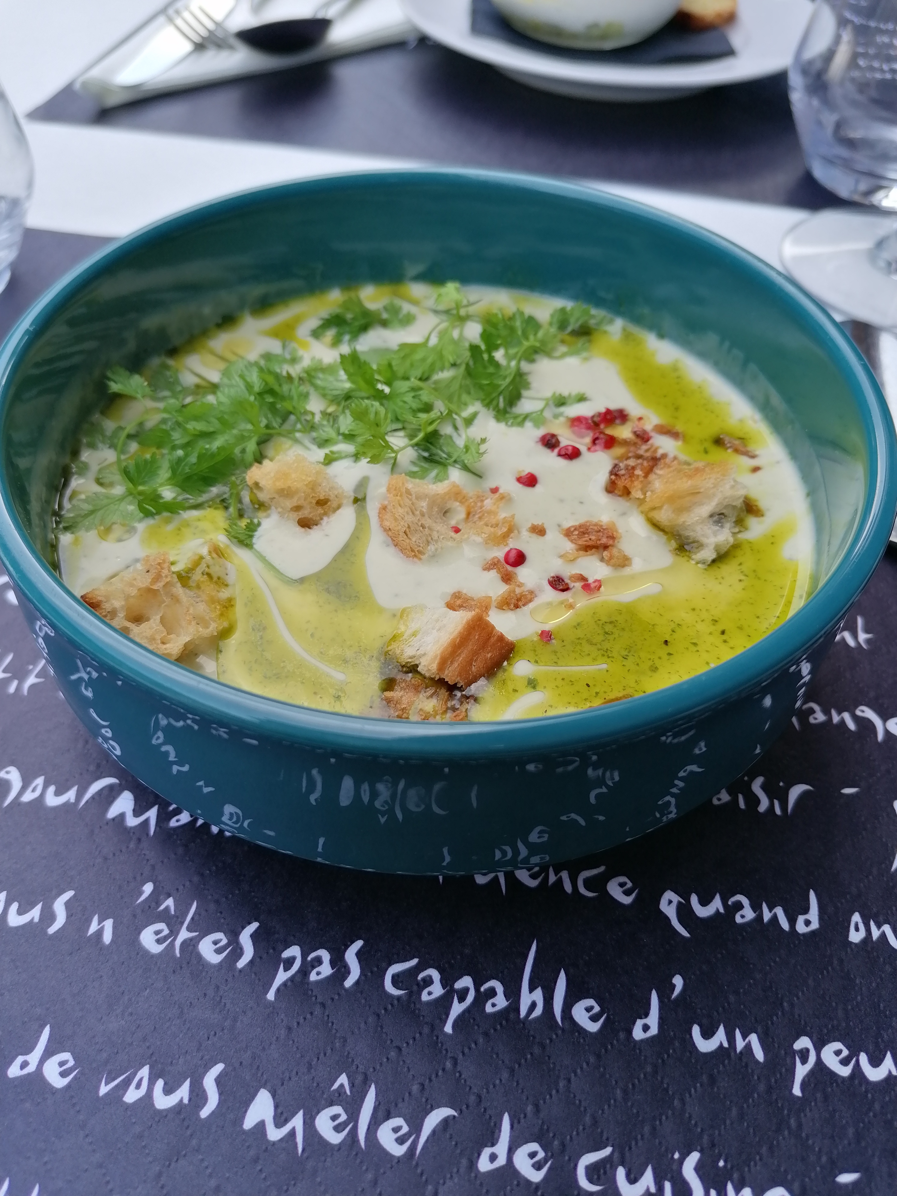 C'est une cuisine très travaillée, savoureuse, hélas le travail des cuisines est gâché par la qualité du pain ( sûrement industriel et congelé) Les plats ne sont pas du tout copieux on reste sur notre faim La qualité est là mais le prix n'est pas à la hauteur de la quantité Le service est correct Le jardin est agréable à l'oeil Donc - 1 point pour la qualité du pain - 1 point pour le prix les assiettes ne sont pas copieuse