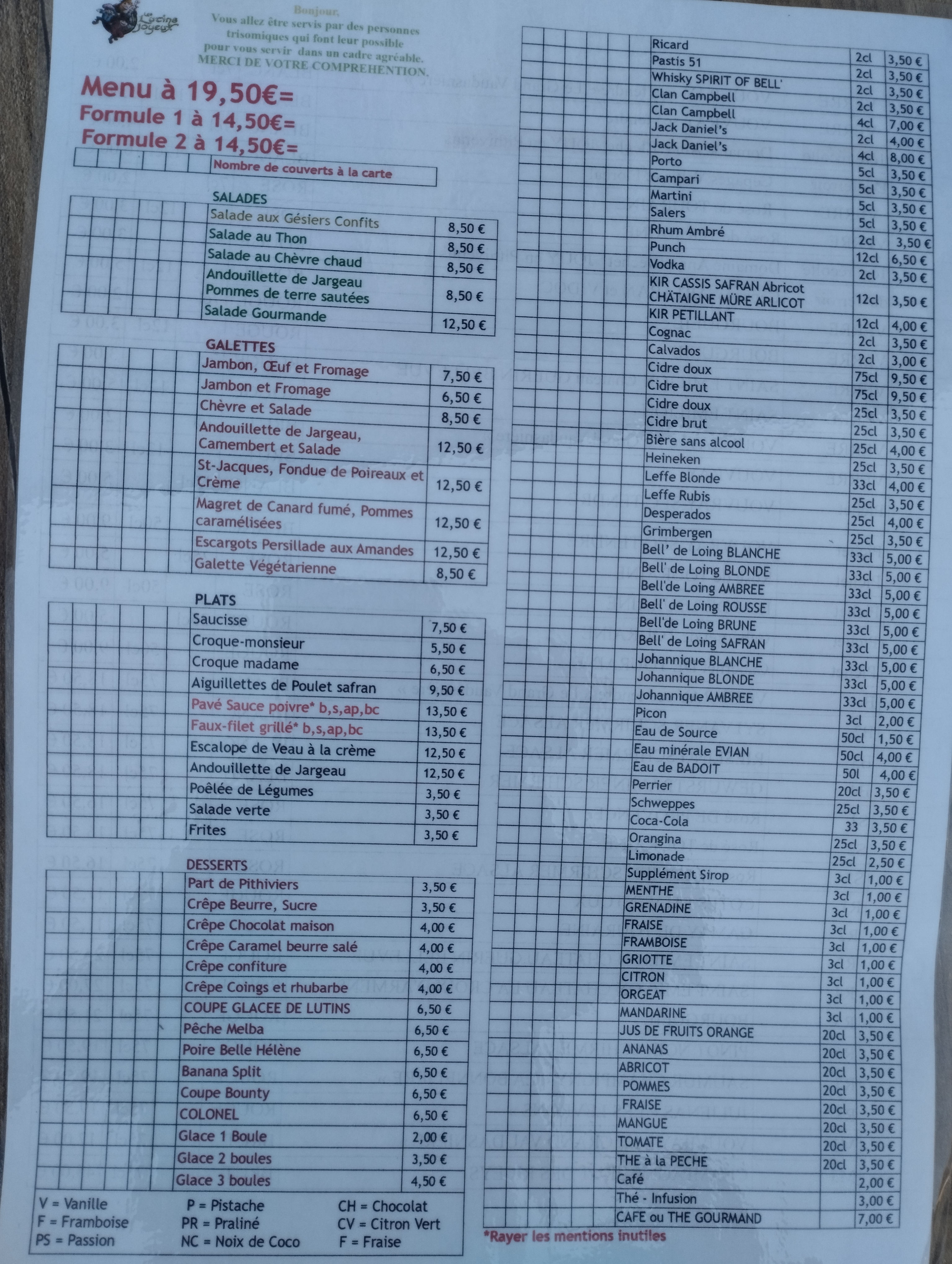 Un restaurant agréable où travaillent des handicapés. Cadre très agréable et lecpersonnel très aimable. Si vous allez à Yevres le Chatel ( Loiret), une petite halte pour vous restaurer