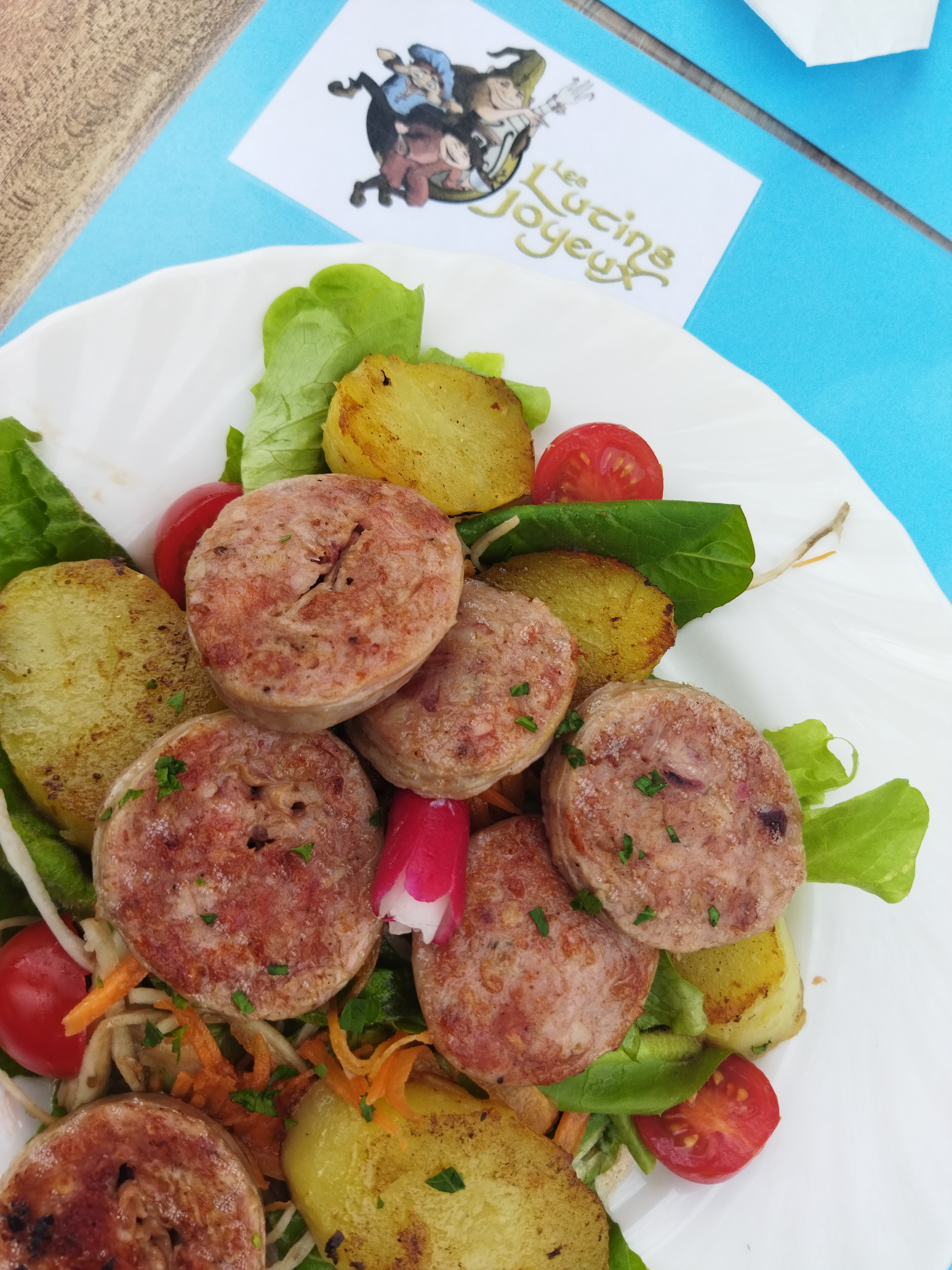 Nous avons déjeuné au lutin joyeux le 15 août. Le concept est bien pensé pour le travail des personnes handicapées et le cadre est agréable et calme. C'est une bonne expérience que je recommande et un établissement à soutenir. Nous avons bien mangé pour un tarif raisonnable. Néanmoins il faut être patient...2h30 pour un menu plat-dessert c'est long...le personnel du restaurant semblait un peu débordé et stressé avec une seule personne au service, sans doute lié à l'affluence du 15 août.