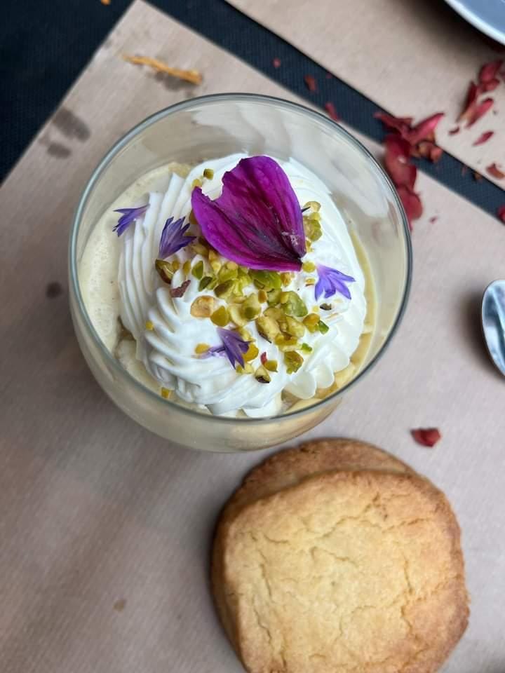 Posté le 30/04/2023 à 18:32"Une découverte toute en poésie, ponctuée de fleurs comestibles, de couleurs, de saveurs, d'harmonie, de sourires et d'attention .... Quel délice de s'y poser le temps d'un déjeuner, d'une pause café ou thé , et de perdre toute notion du temps... Les mots chantent et résonnent autour de la carte fleurie ... Produits locaux, cultivés, sublimés par la Cheffe, puis montés en puissance par une équipe au service irréprochable et très agréable 🌹🍀🌺🌸💮🏵️🌹"