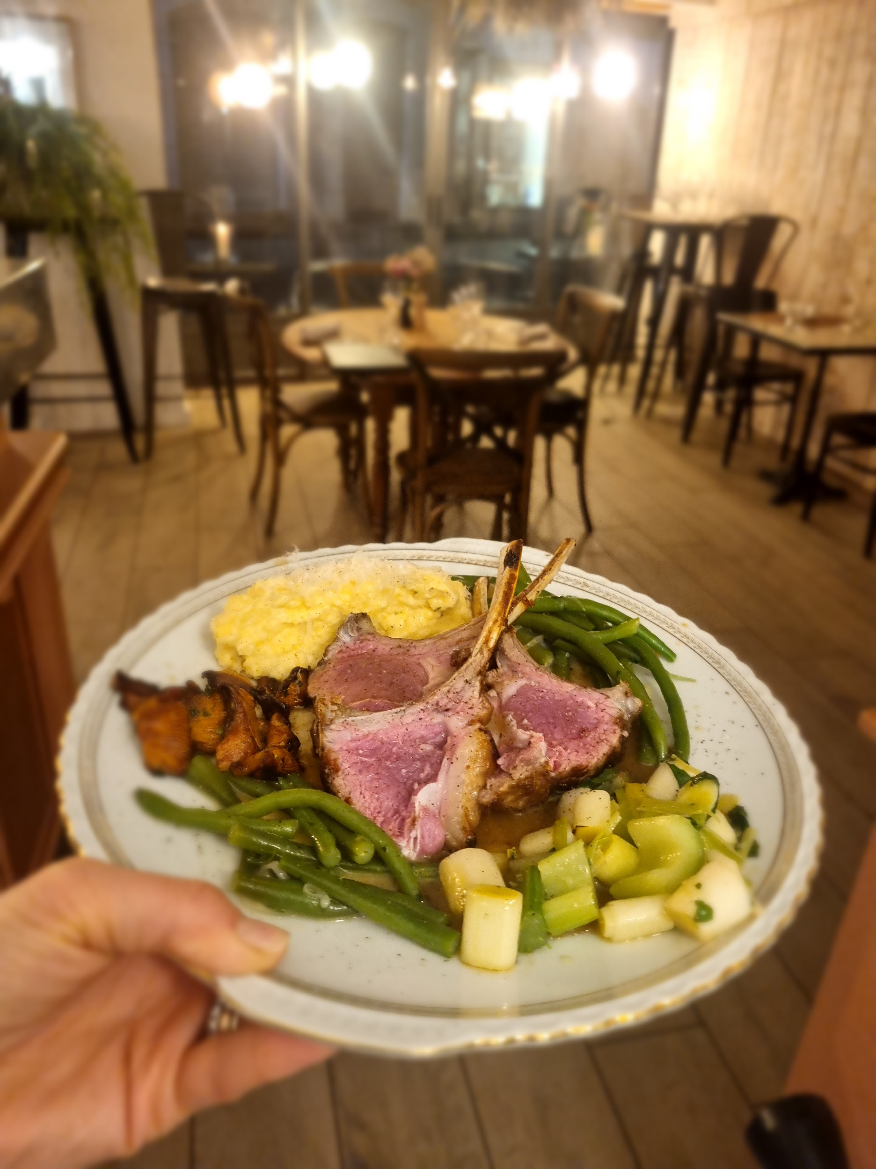 Trop cher pour la qualité et la quantité des plats. C'était bon mais le serveur nous a fait pression pour obtenir le steak moyen/saignant même si nous voulions bien cuit. Malgré l'atmosphère accueillante du restaurant, le service semblait chaotique. Je ne recommanderais pas.