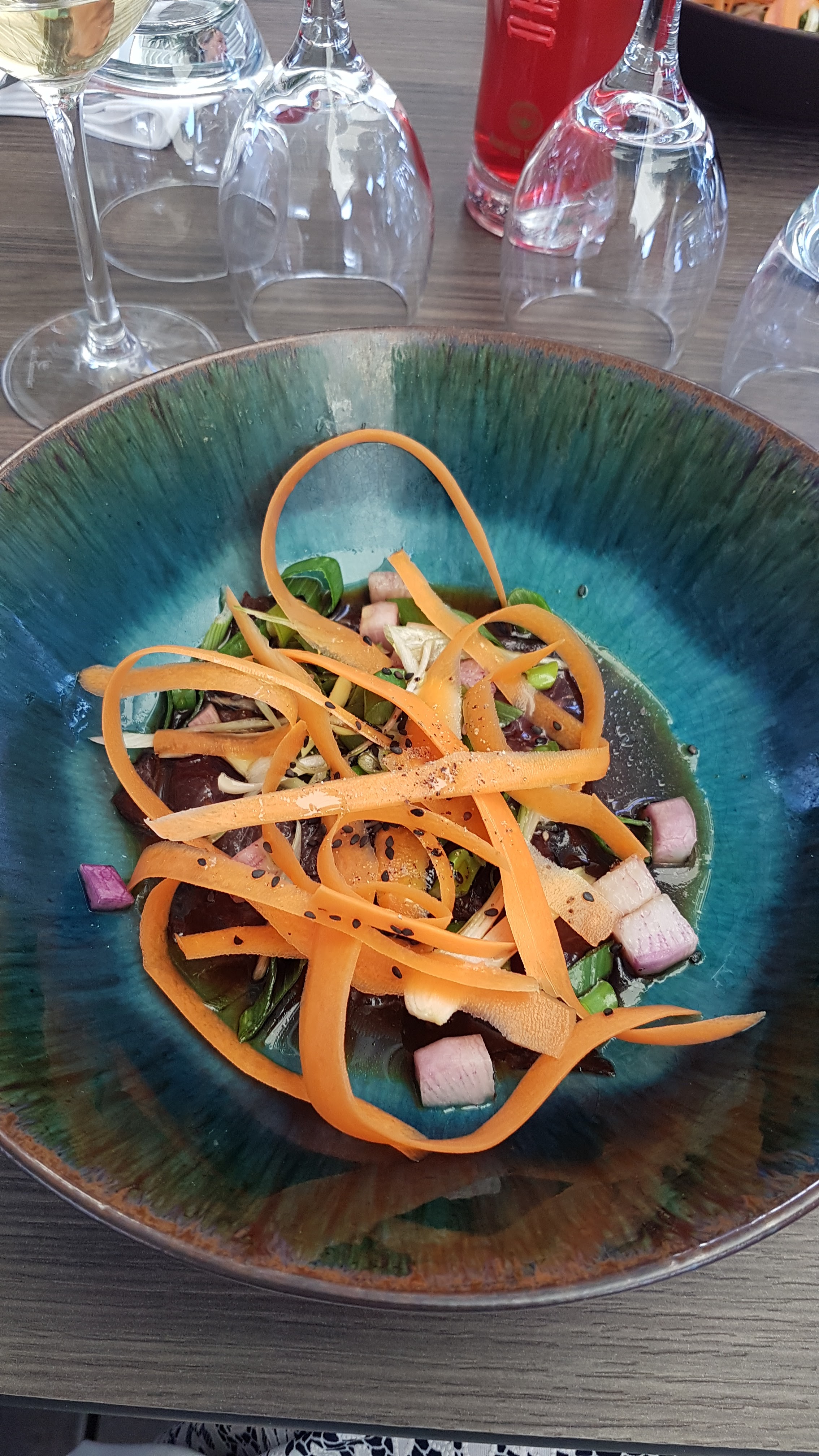 Pas de large choix a la carte +le serveur qui oublie de donner les suggestions cela ne laisse pas grand choix. Quantité dans l'assiette du plat et dessert légère, nous avions faim en partant.