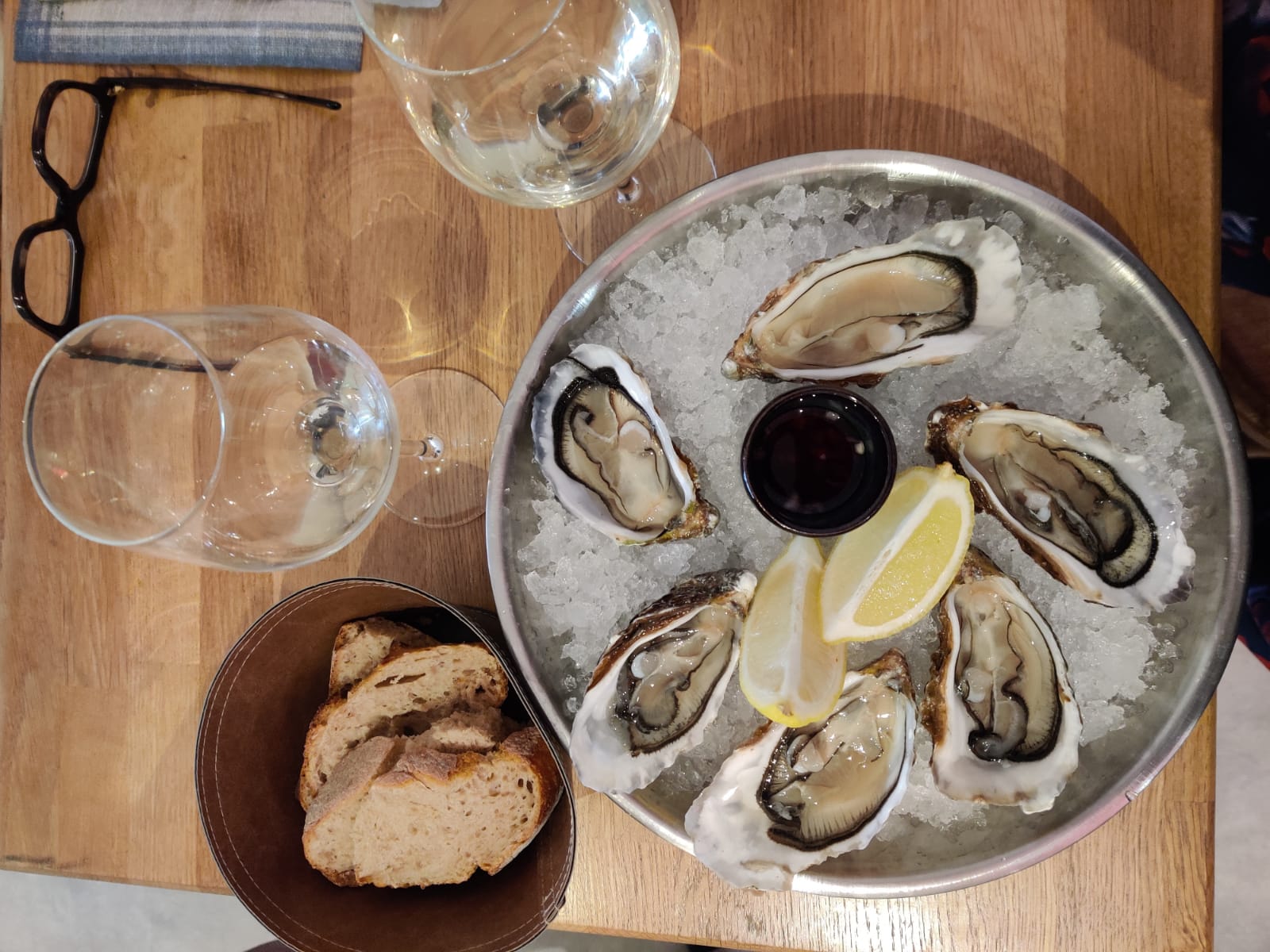Je suis venue ici pour les huîtres et la bonne humeur, je n’ai été déçue ni par les unes ni par l’autre… Par contre, il faut revoir absolument les desserts : j’ai pris une pomme au four. Elle a été sortie d’une pomme sous vide déjà cuite (j’ai vu faire le cuisinier), posée froide sur une assiette avec une boule de glace et du caramel tout prêt. Ce n’est pas bon et pas digne je trouve de ce restaurant qui prône des valeurs de terroir, fait maison… Je ne reviendrai que quand les desserts, comme le reste, seront qualitatifs. À bon entendeur ! 🙏