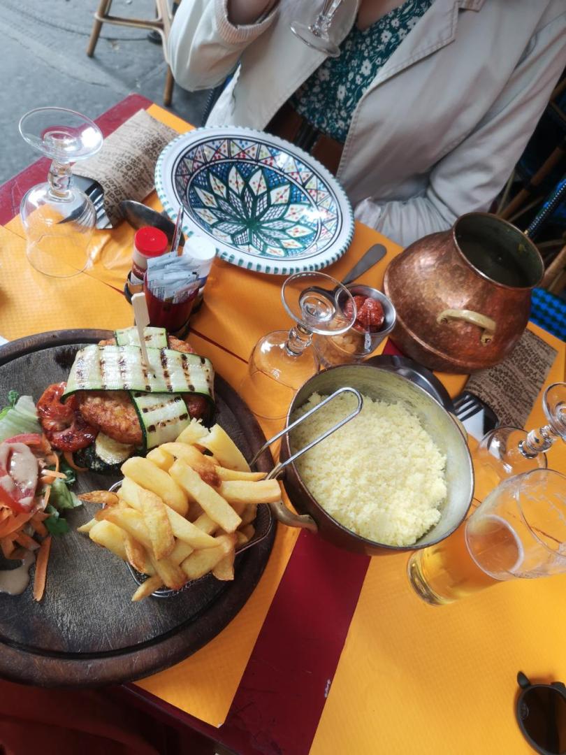 Serveurs très sympas,plats bien servis,mentions spéciales aux couscous et thé à la menthe,mais il y a beaucoup de bonnes choses à manger👍,je ne m'en lasse pas👏👏👏👏et endroit propice aux rencontres 😋😋😋aussi,et aux partages entre amis🍻