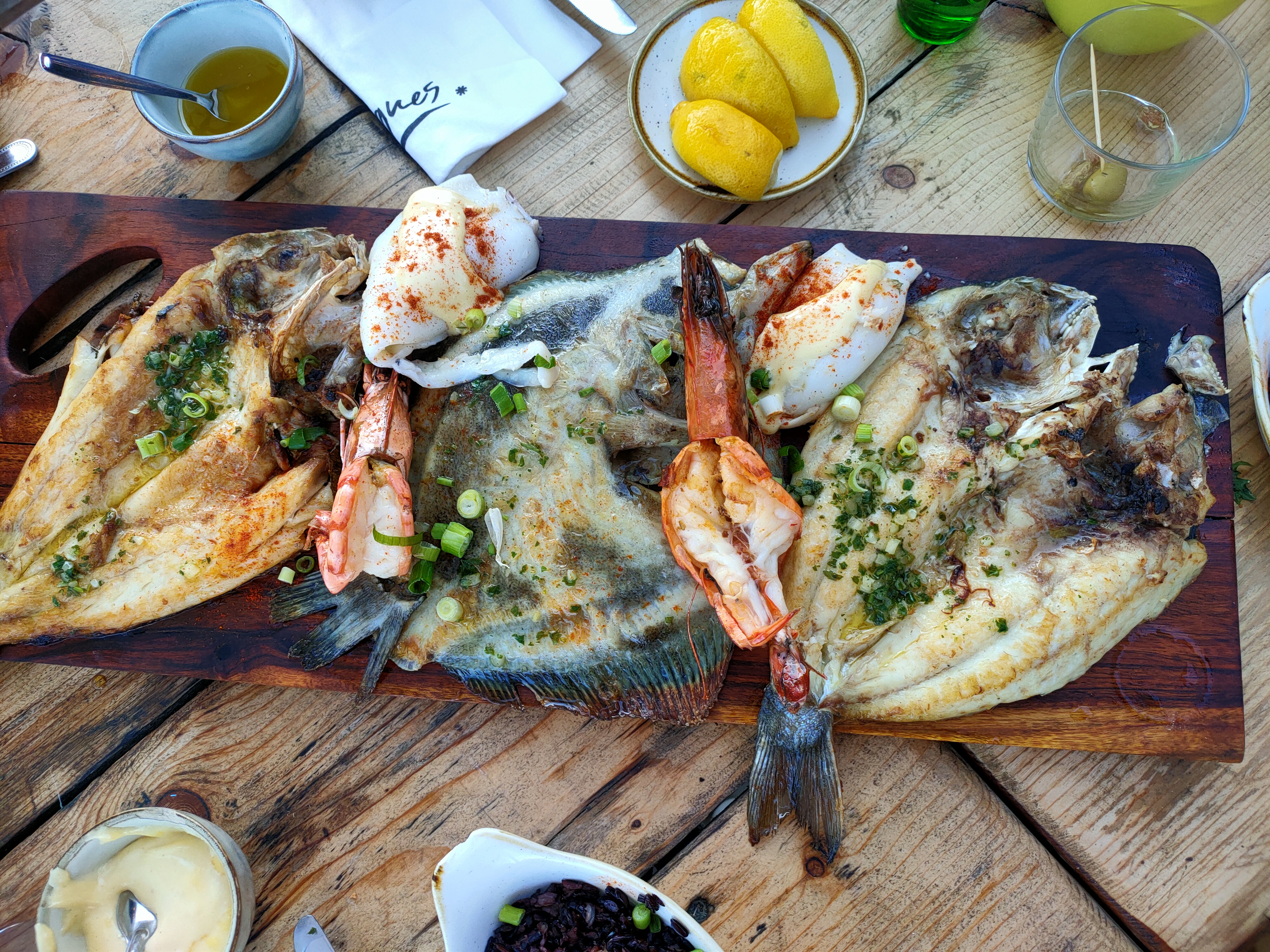 Nous avons mangé au restaurant. Le service était vraiment top de la part de chacun des serveurs, tous très attentionnés.. Les plats étaient excellents ! Nous avons prit les gambas, les sèches et poulets panés pour la petite et c'était parfait. La terrasse est trop belle, avec des végétaux vraiment trop beau, en face du port... Pour faire suite aux commentaires précédents, oui l'eau est payante mais au moins elle n'a pas l'odeur du chlore..... Merci pour ce repas.
