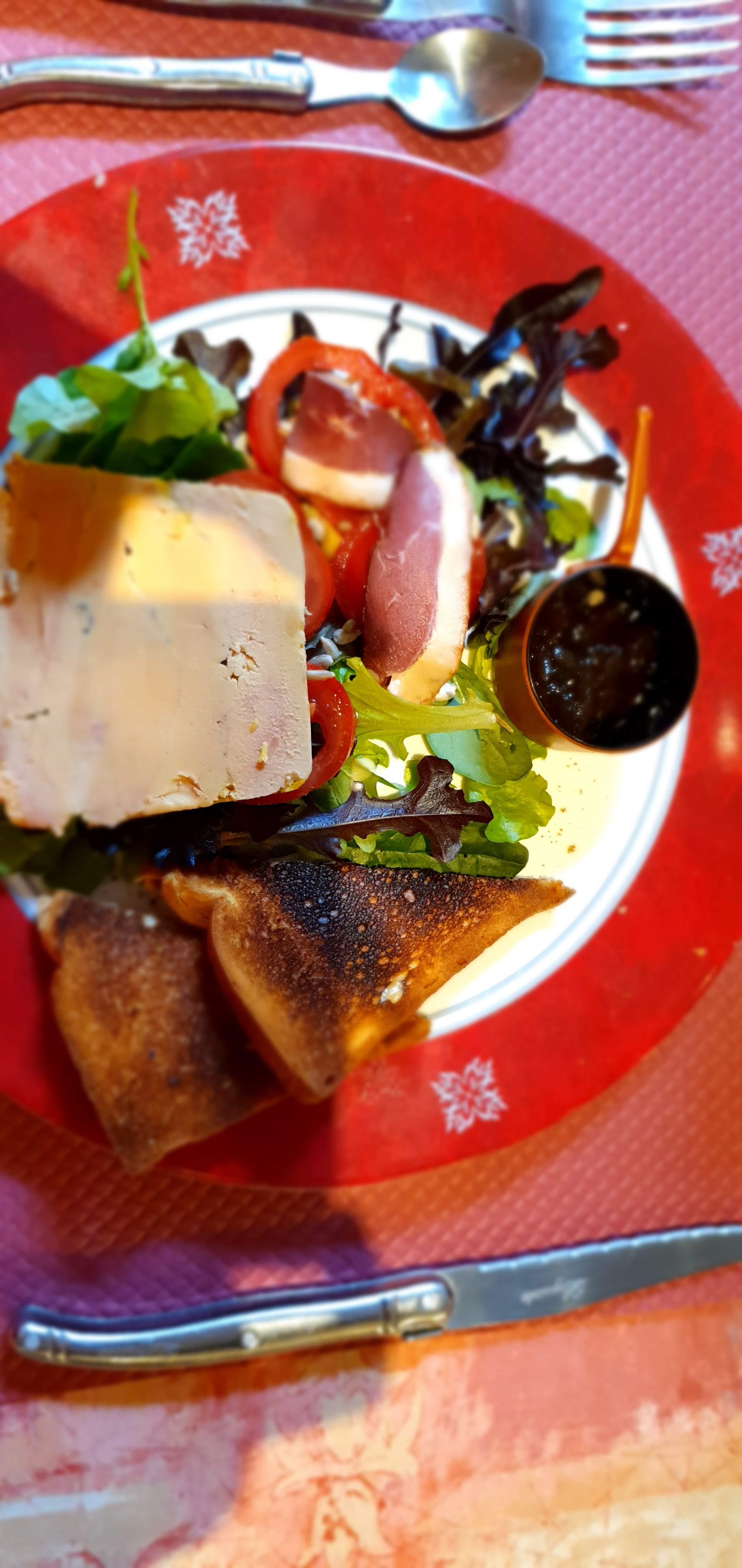 Fois gras maison excellent Cuisses de grenouilles correctes mais trop grasses (baignant dans l'huile) A part ces 2 plats la carte ne fait pas rêver Personnel sympathique mais débordée. Terrasse simple sans attrait avec mobilier en plastique. Il manque beaucoup de chose pour parfaire ce repas et mériter le prix payé (29€)