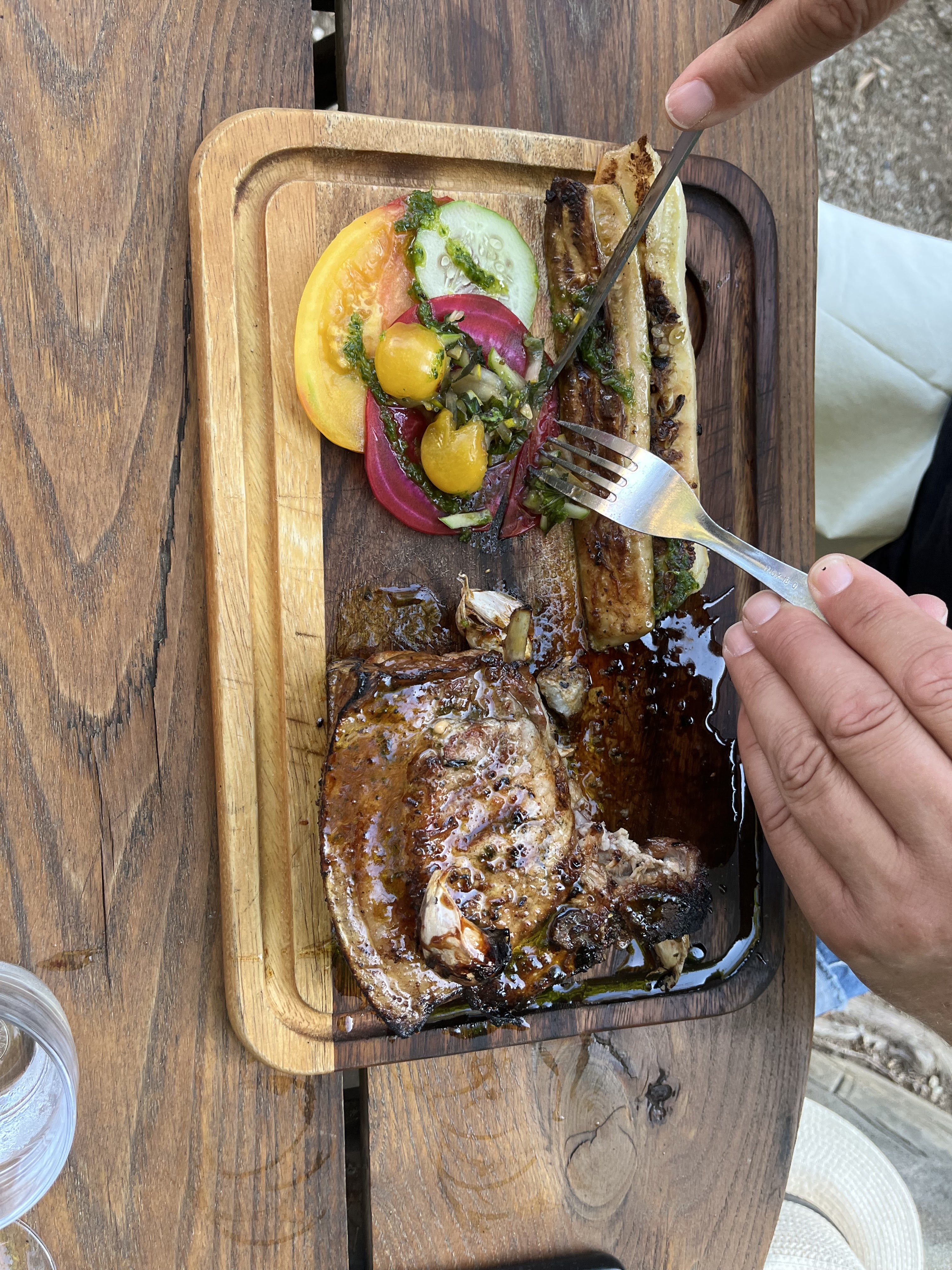 Très bon restaurant dont tous les produits sont frais et locaux ou même du jardin. Les prix sont assez élevés mais les plats sont copieux et l origine des produits le justifie.On a goûté les grillades de viandes et de poissons qui étaient excellentes mais malheureusement trop cuitent a notre goût. Mention spéciale pour la salade de tomates du jardin. Simple et magique.