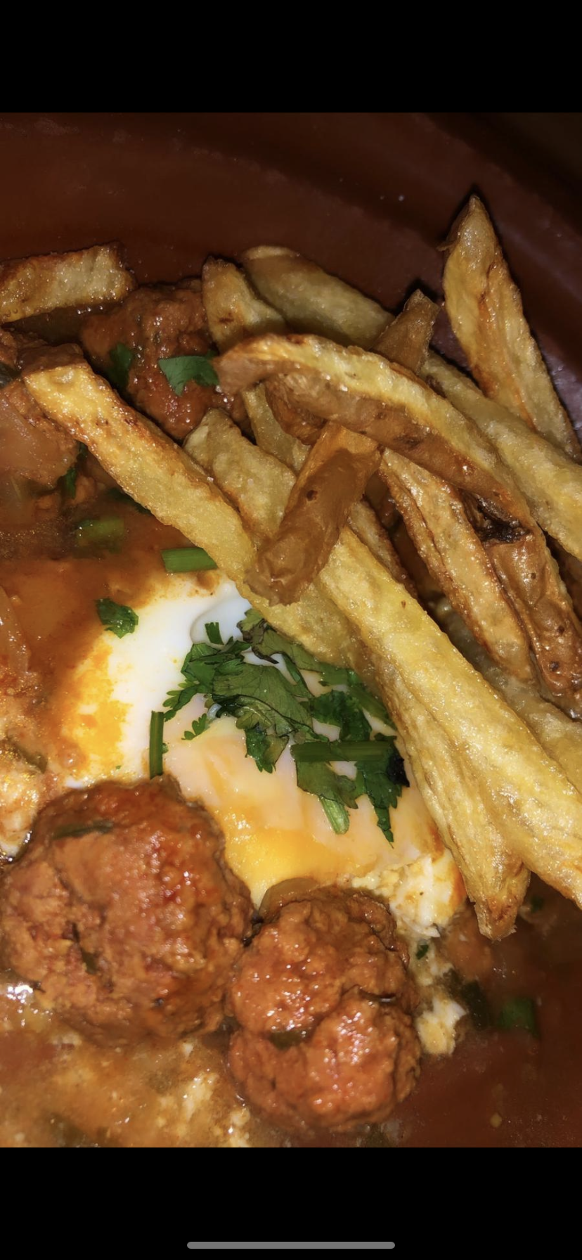 Resto familial. Cuisine authentique et super bonne! On a pris le tajine kefta, des frites, frites omelette et une chakchouka. Le tout était hyper goutu et en très bonne quantité. Un pain matlou3 hyper moelleux fourni à chaque table Tiramisu très bon et petit conseil : mélangez bien le thé dans la théière !