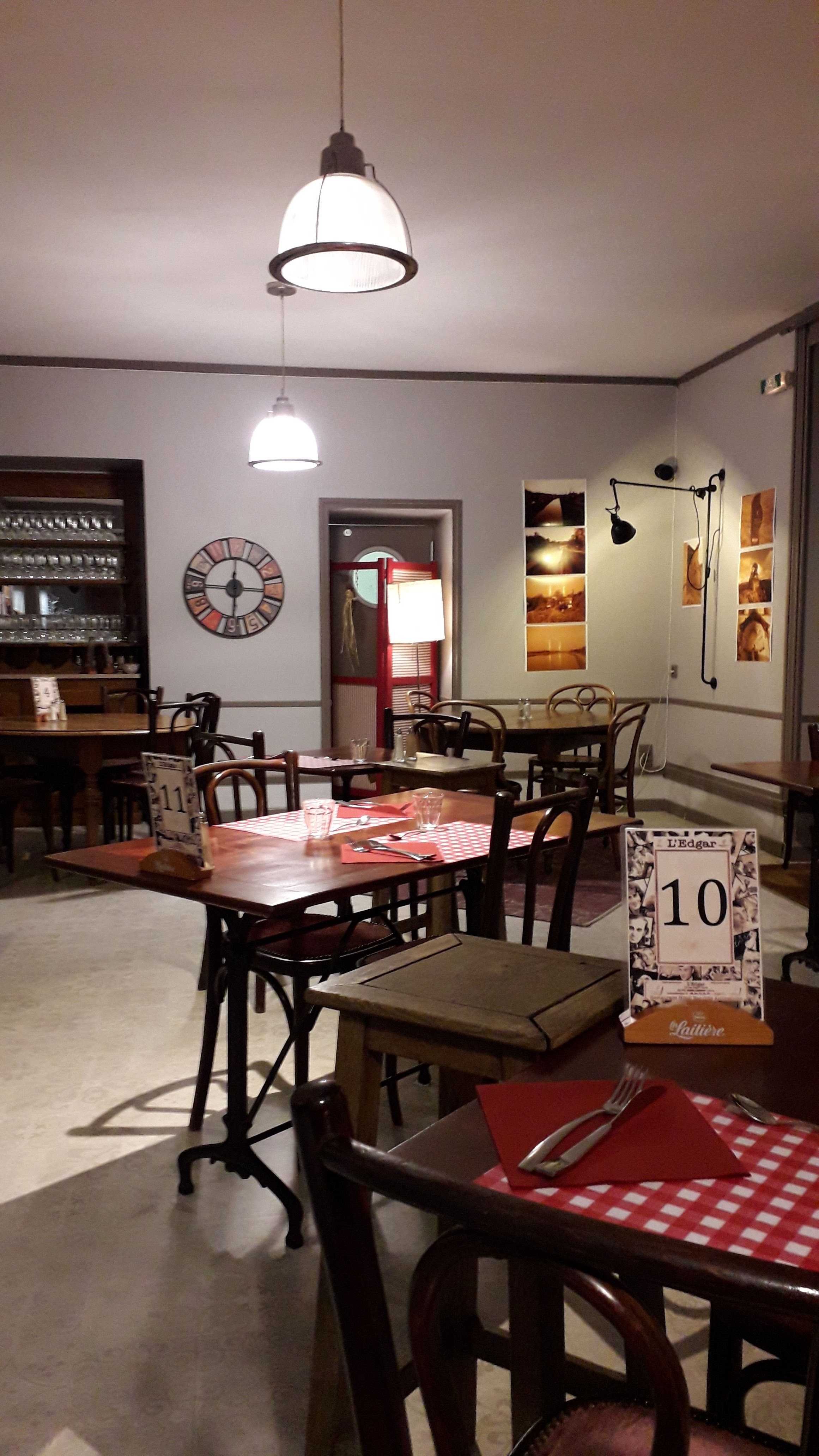 En 2017 , j'avais eu l'occasion de découvrir ce restaurant lors d'une soirée concert, j'avais (déjà) été conquise par le lieu, le menu et l'ambiance. Hier, 27.08.2022, j'étais conviée à un mariage dont la cérémonie laïque, l'aperitif, le repas et le bal avaient lieu à l'Edgar. Tout était parfait : le lieu agréable et joliment décoré, les boissons, verrines et toast très bons lors de l'apéritif dans un cadre convivial qui a ey lieu dans la cour extérieure (arrière) du restaurant. La salle de réception , la terrasse couverte, etait très bien décorée, les tables mises en valeur et le repas servi très bons et du terroir. Merci à Alexis et toute son équipe pour leur professionnalisme. Et surtout un grand merci aux Mariés : Fanny & Sami pour cette superbe journée, quel bon moment plein d'émotions.