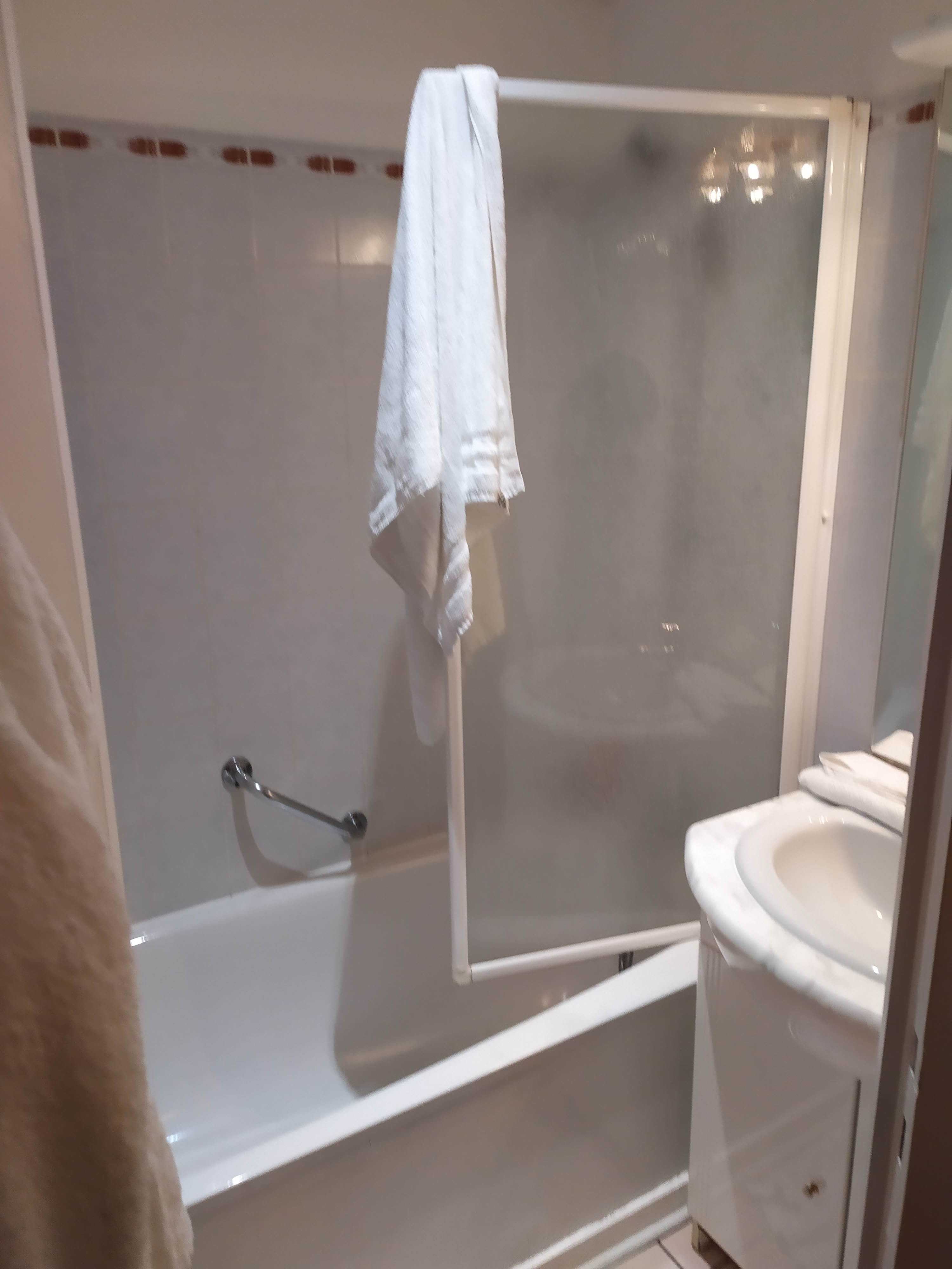 Hotel avec du potentiel , mais besoin de renouveau . Aménagement à revoir et à moderniser . Rares sont les douches , plutôt des baignoires . Accueil moyen , il a fallu demander les serviettes de toilette à l'arrivée. Pas de peignoirs ni serviettes piscine , A demander . Pas de livret d'accueil dans les chambres , comment appeler la réception de notre chambre ? Mais personnel à l'écoute désireux de mieux faire . Pas vraiment des pro . Mais bonne volonté le restaurant est servi par des gens par contre compétents et très agréables. Cuisine bonne et servi avec soin Les prestations annexes de bien être sont très bien , personnel très professionnel. Demande à s'améliorer, mais bon potentiel . Jardin agréable.