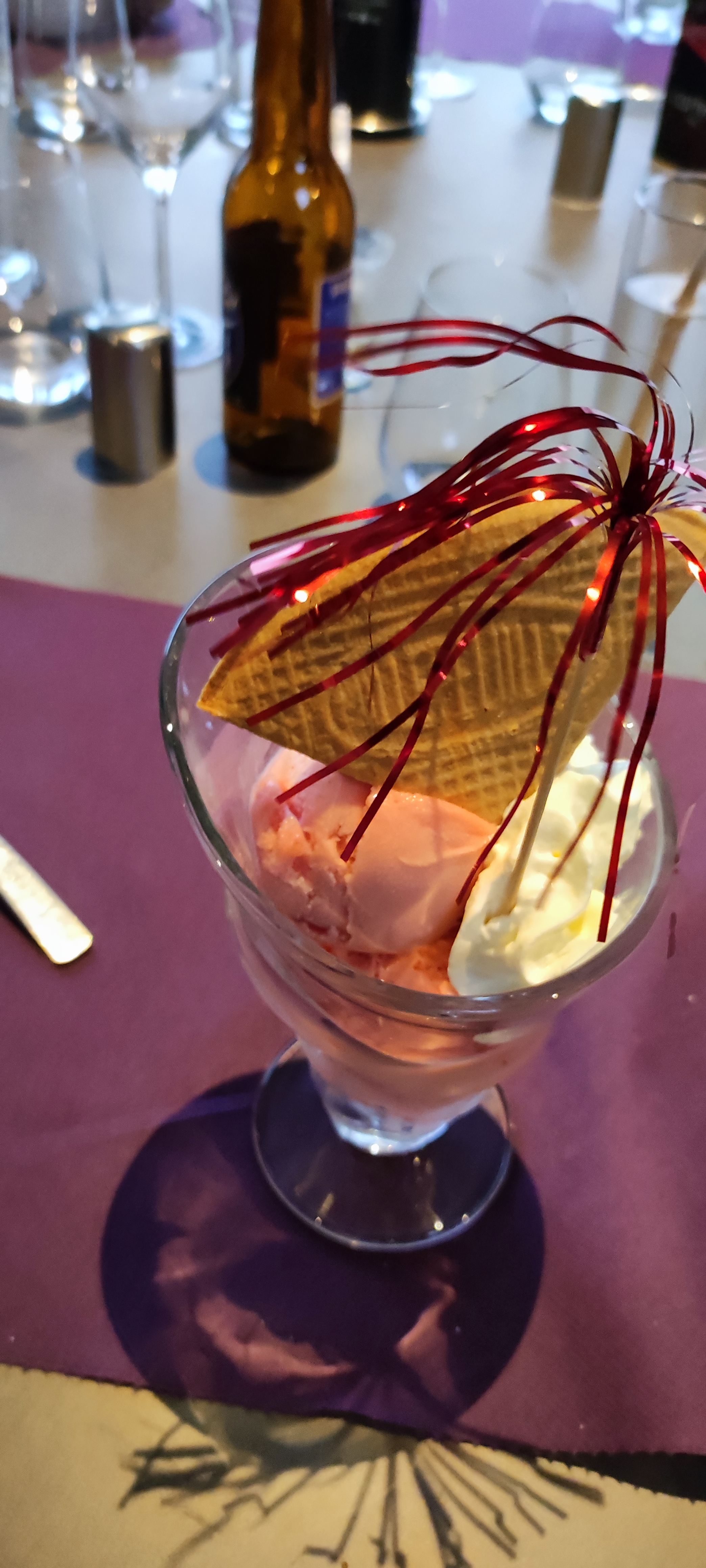 Je voulais signaler que j'avais été très déçue par les prestations fournies par un établissement de quatre étoiles. Non seulement les nappes n'étaient pas repassées, mais, en plus, la moquette était plus que sale, les toilettes n'étaient pas dans un état de propreté irréprochable et des toiles d'araignées étaient visibles partout. Par ailleurs, le repas fut déplorable : le feuilleté de chèvre fut immangeable (impossible de le couper tant il était dur), la brochette de viande était minable (juste deux morceaux de poulet minuscules et un morceau de pomme, tout aussi minuscule) et le bavarois aux fruits rouges donnait envie de vomir tant il avait le goût de vieux ! Au final, en sus de la qualité du repas plus que déplorable, la quantité était loin d'être au rendez-vous ! Prévoir un sandwich en sortant ! Je ne voulais pas mettre d'étoile tant ma déception fut grande, mais un minimum d'une étoile est demandé pour que mon commentaire soit publié.