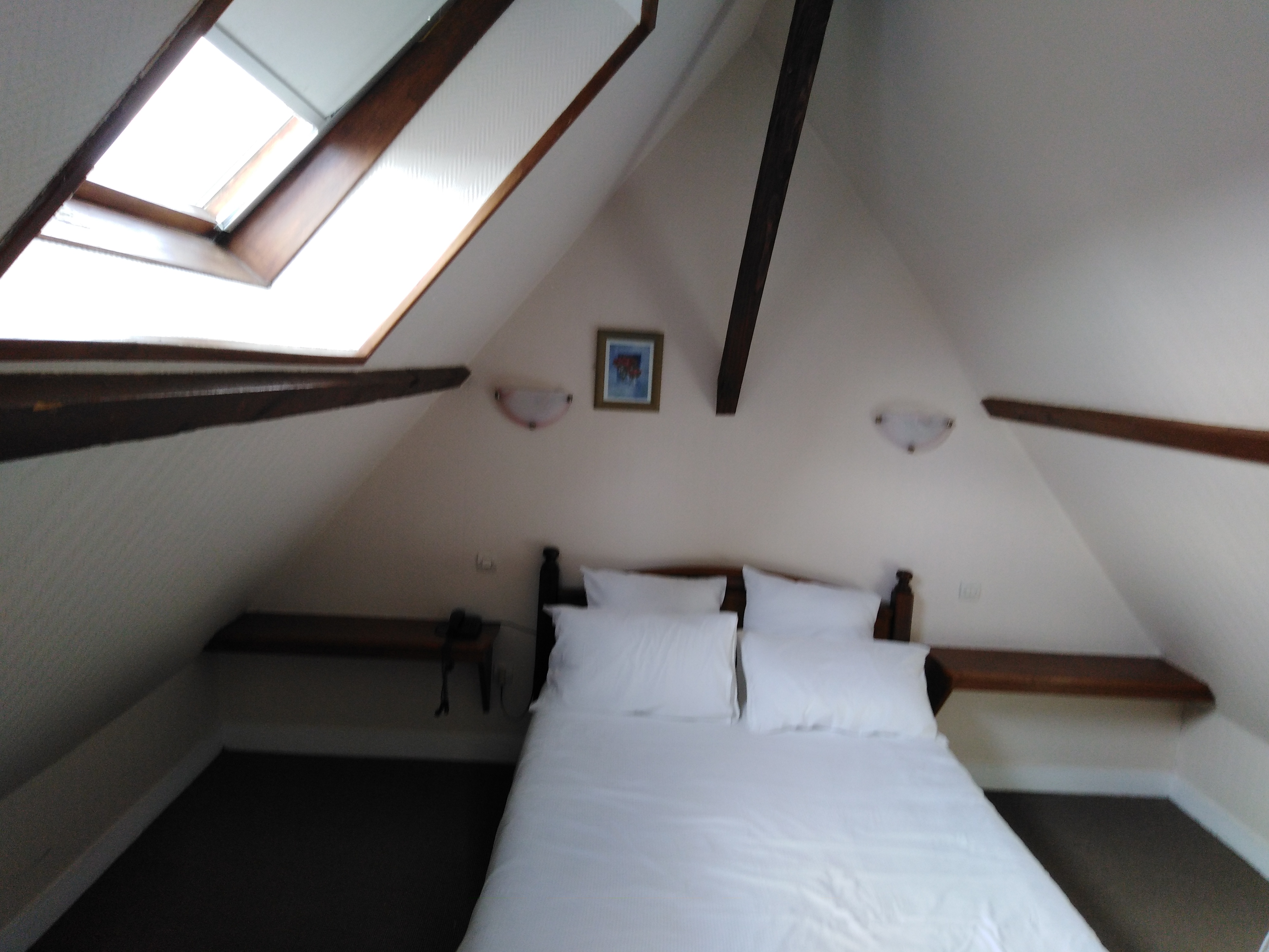 Chambre en comble très étriquée pas de climatisation chaleur insupportable !! Accessibilité a la chambre parcours du combattant ! Tarif très excessif pour cette chambre. Déjeuner a 15 euros par personne rien de d'extraordinaire voir même cher pour peu de choix et produits de qualités moyennes. Cet établissement peut faire beaucoup mieux. Mais je vous invite internot a vous faire vous même un avis en visitant cet établissement vieillissant. Avis du voyageur Normand.