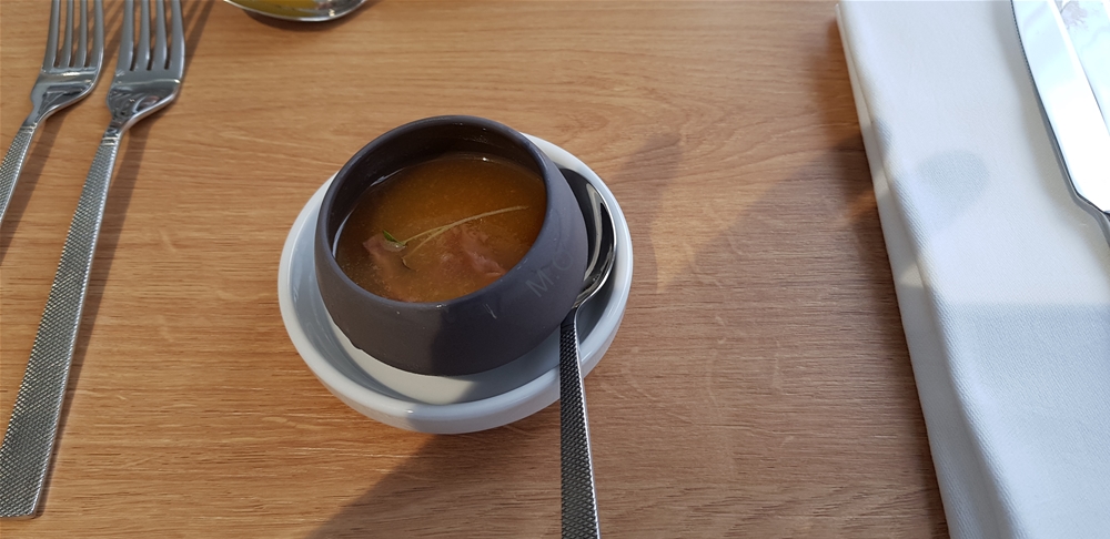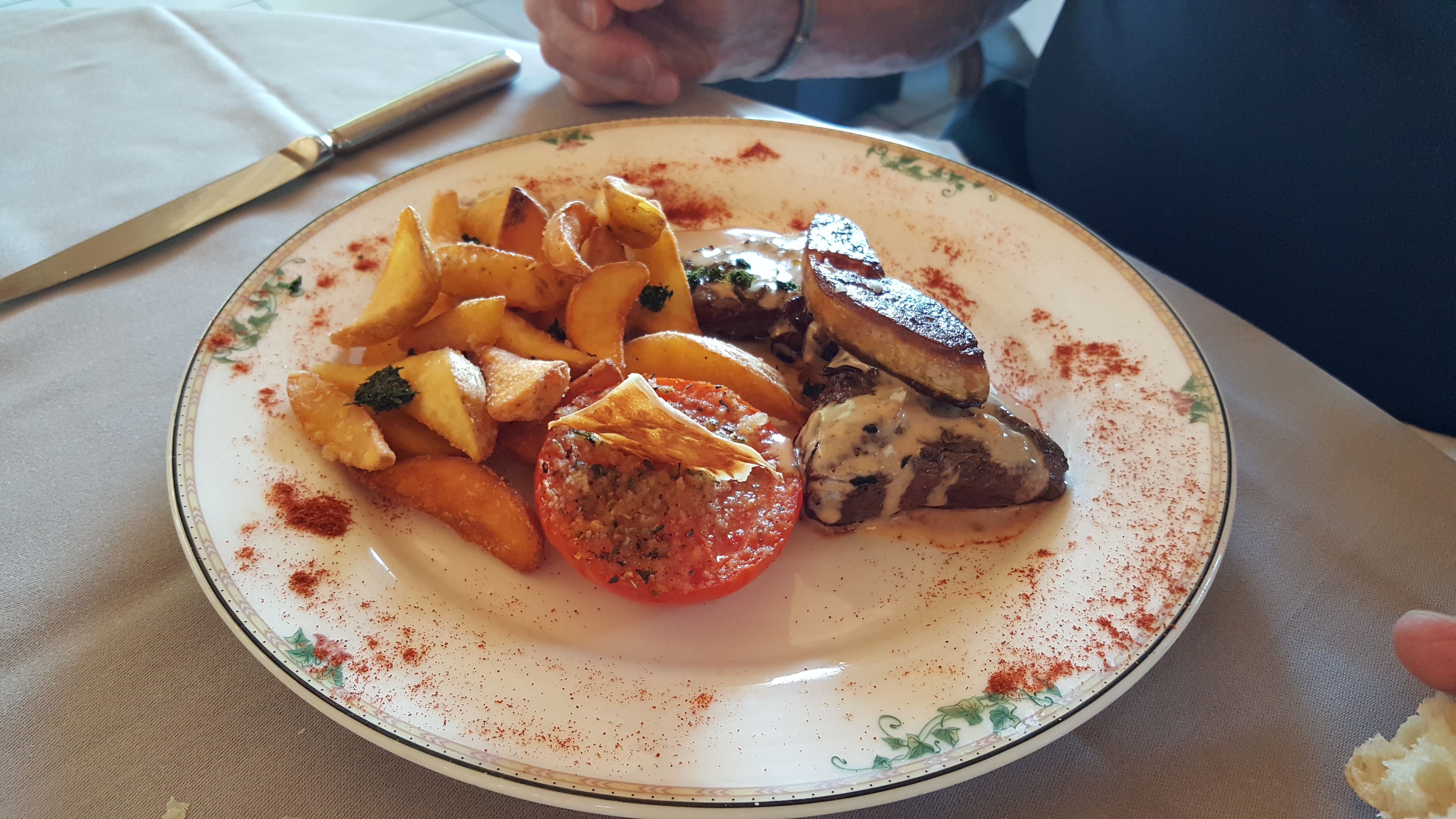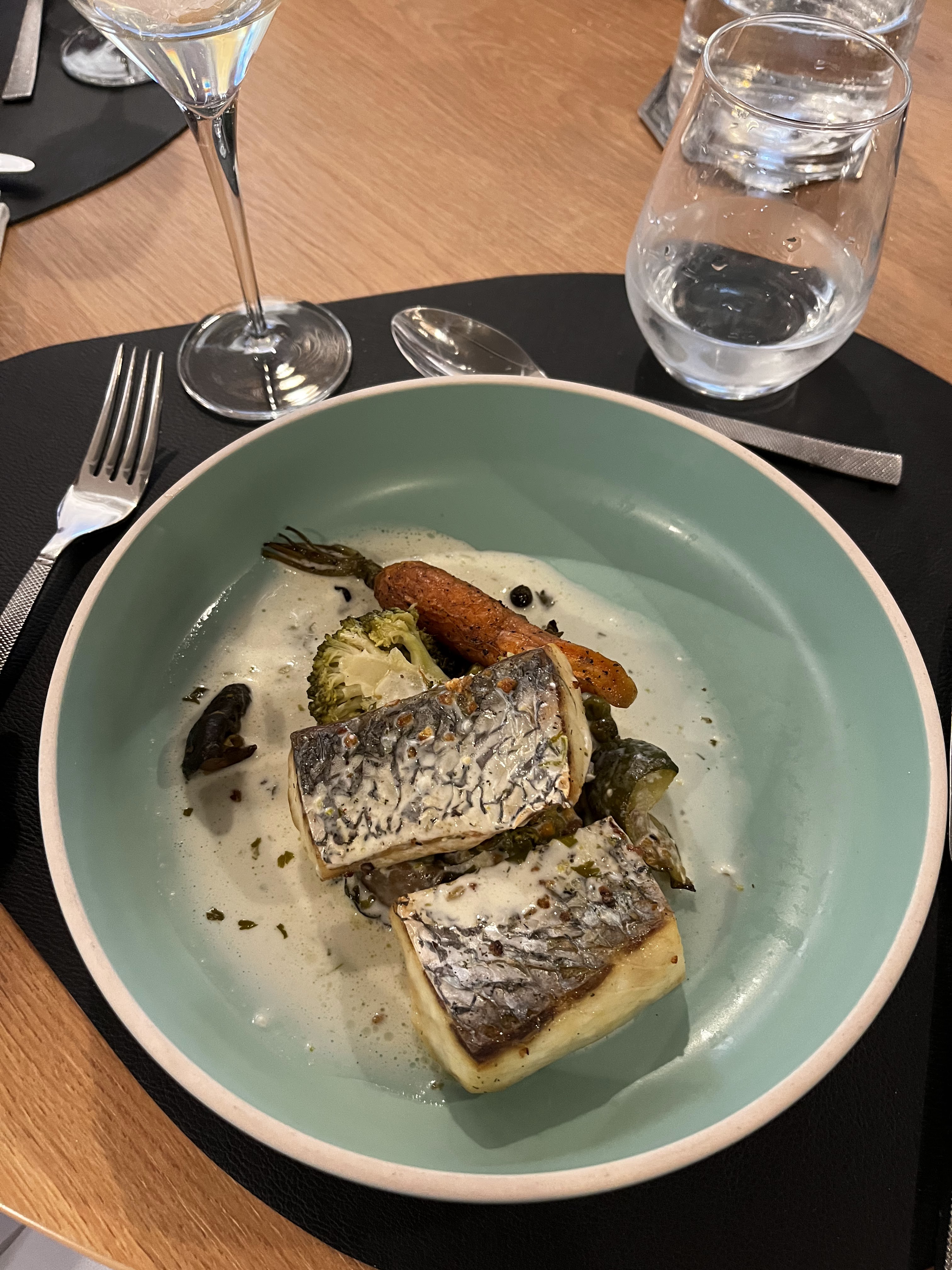Repas excellent, les assiettes sont un régal pour les yeux et les papilles. Seul bémol, le vin est servi trop longtemps après l'assiette.